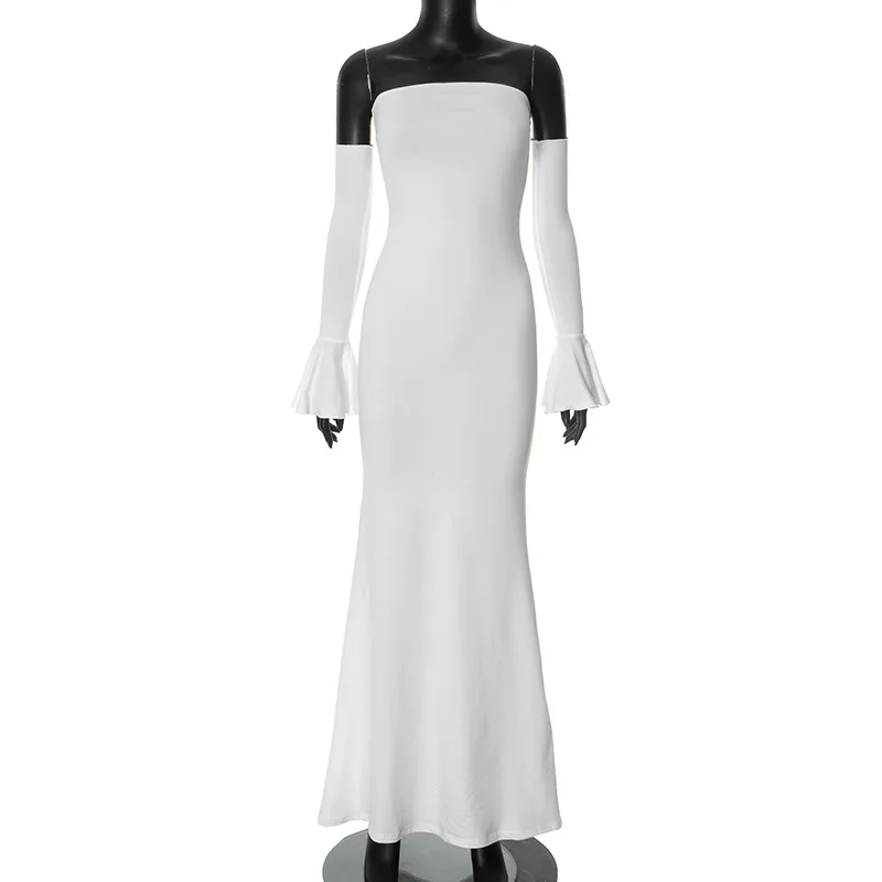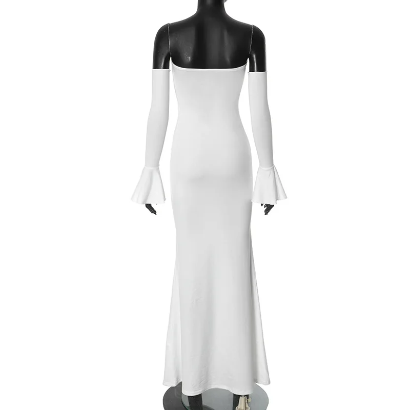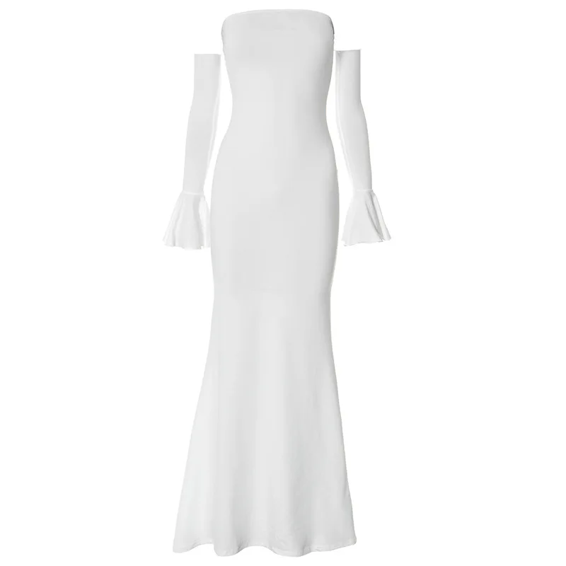 Featuring bell sleeves, this dress adds a touch of elegance and femininity, perfect for special occasions.