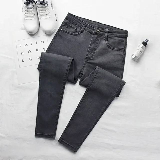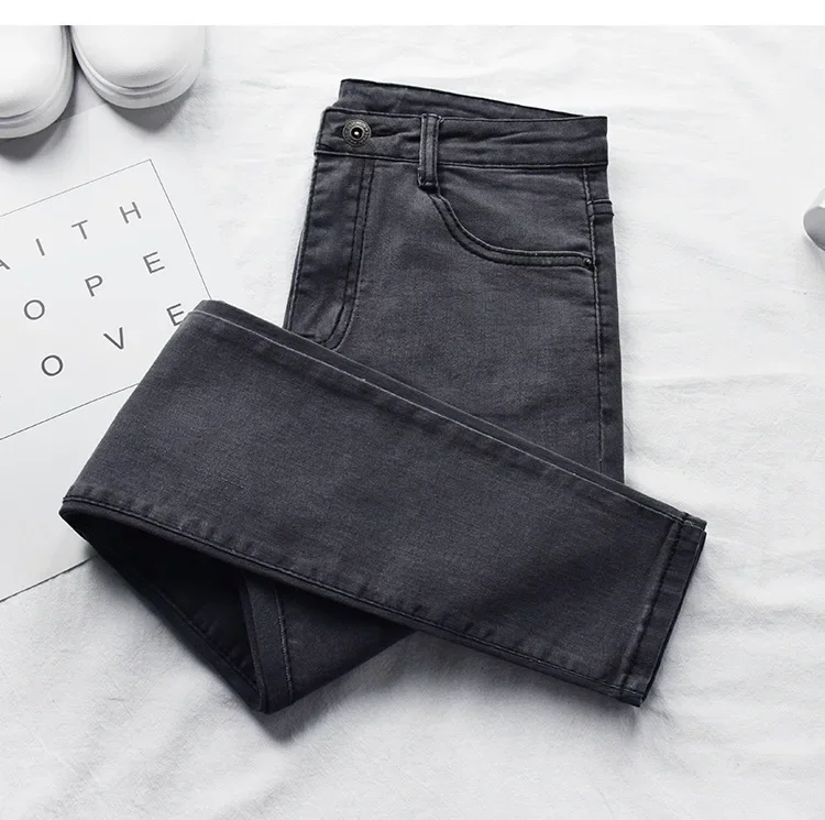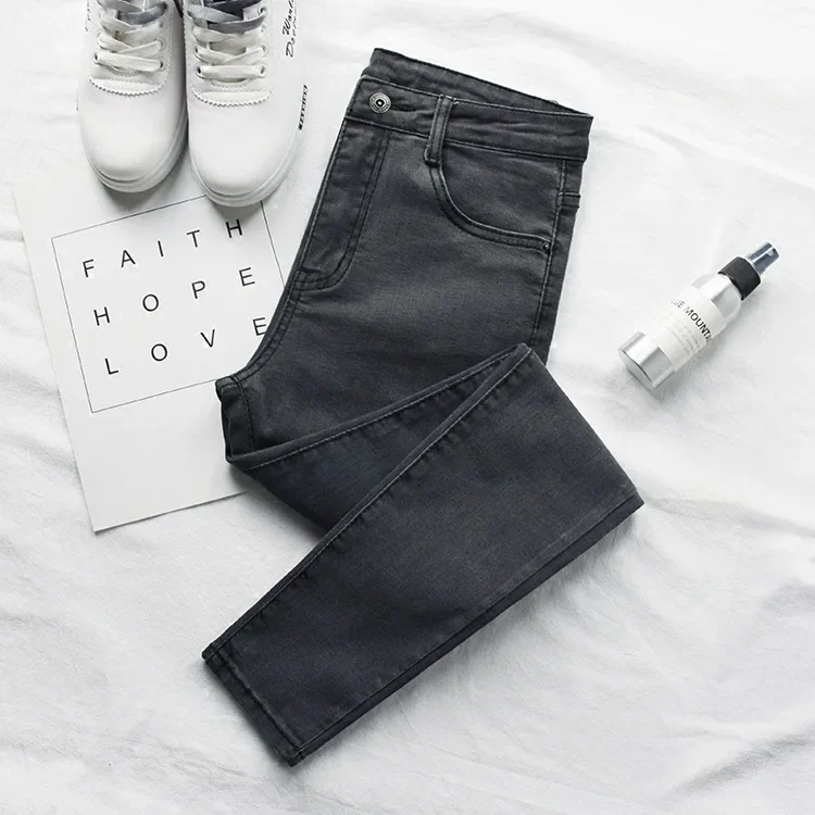 High Waist plus Size Denim Jeans Women's Spring Autumn Black Slim Fit Ankle Length Cotton Regular Thickness Formal Style