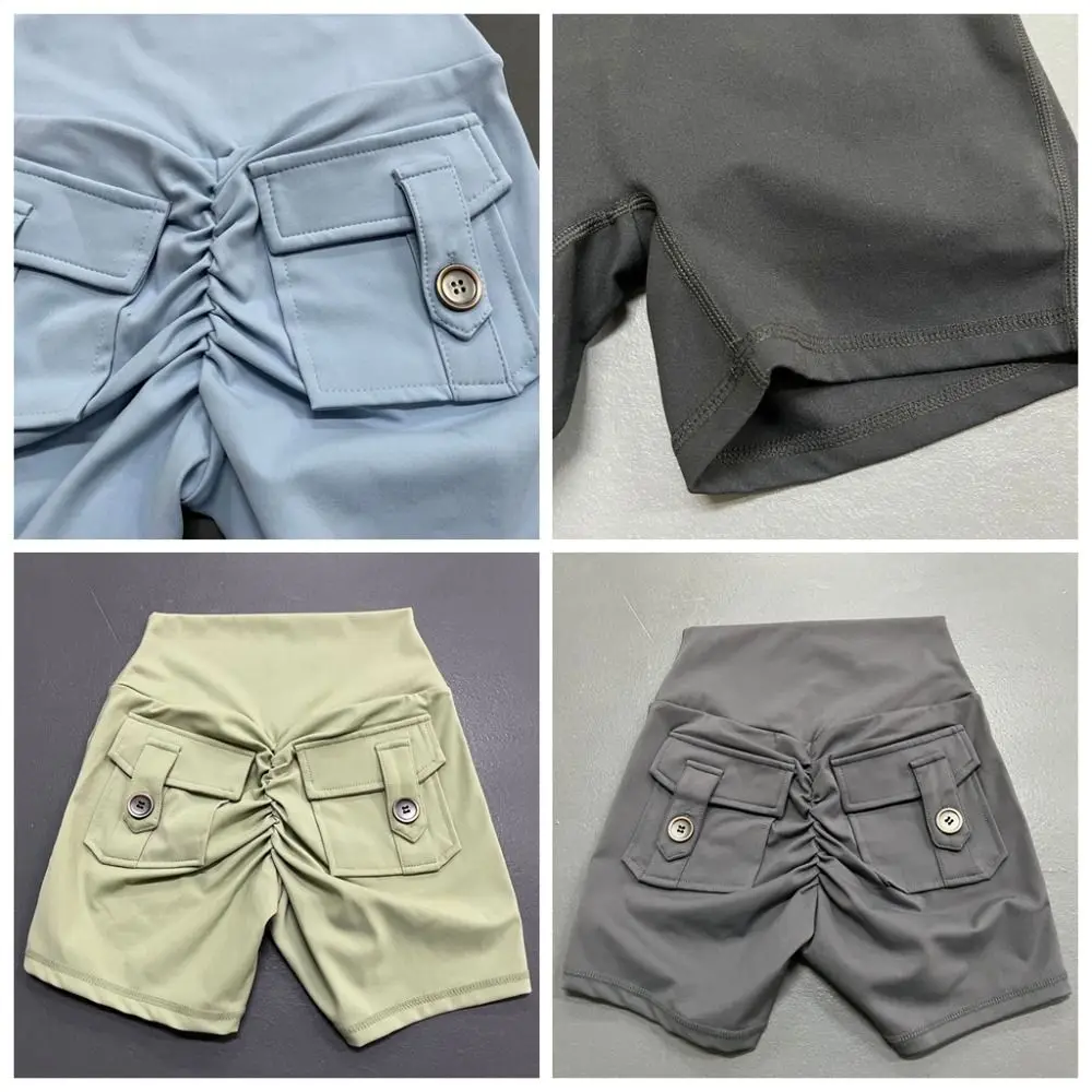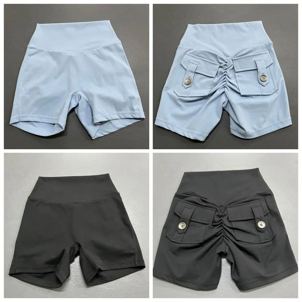 High Waist Pocket Gym Shorts Push Up Breathable Peach Hip Shorts Scrunch with Pocket Buttocks Peach Shorts Riding