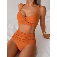 Shell Scalloped Wrinkled Underwired Bra Cup Bikini Female Swimsuit Women Swimwear Two-pieces Bikini Set Push Up Bathing Suit