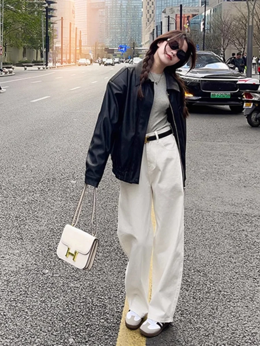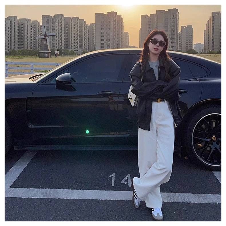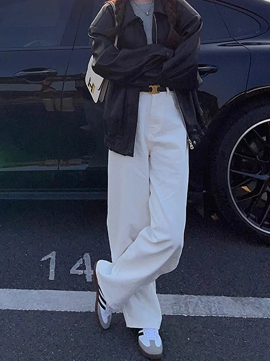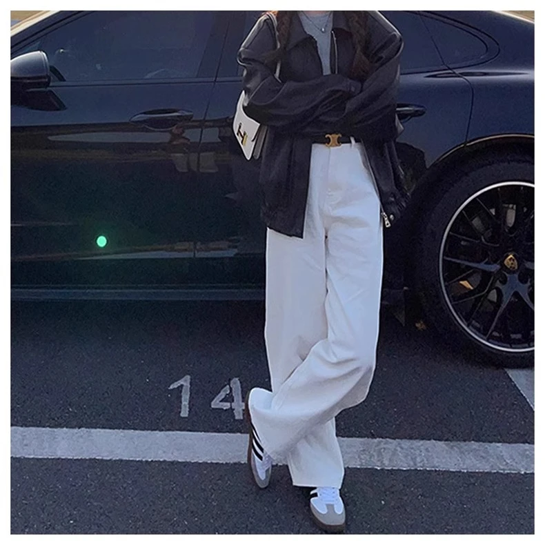 High Waist Straight Leg Denim Jeans Women’s White Casual Loose Wide Leg Pants Summer Slimming Narrow