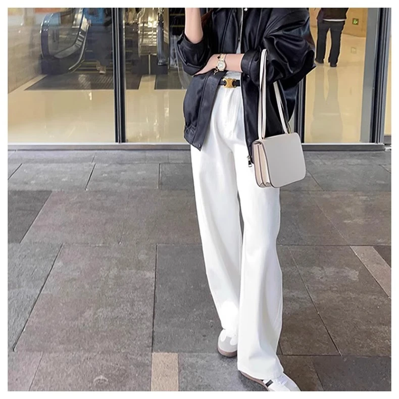High Waist Straight Leg Denim Jeans Women's White Casual Loose Wide Leg Pants Summer Slimming Narrow Version Trousers