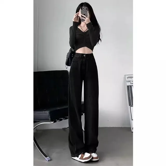 Be the first to review “High Waist Straight Leg Jeans Women’s Spring New Design Casual Loose Slimming Floor-Length Pants”