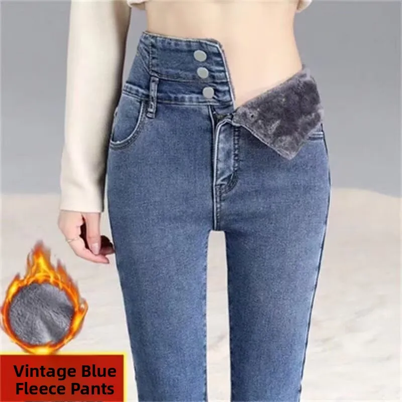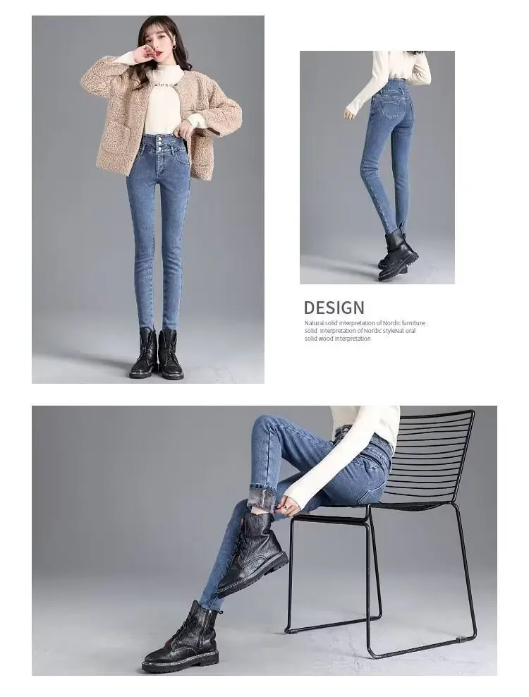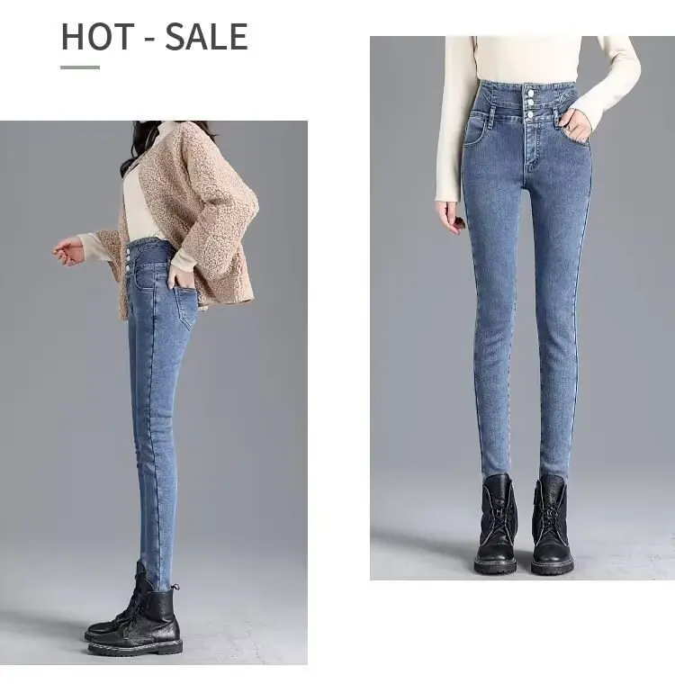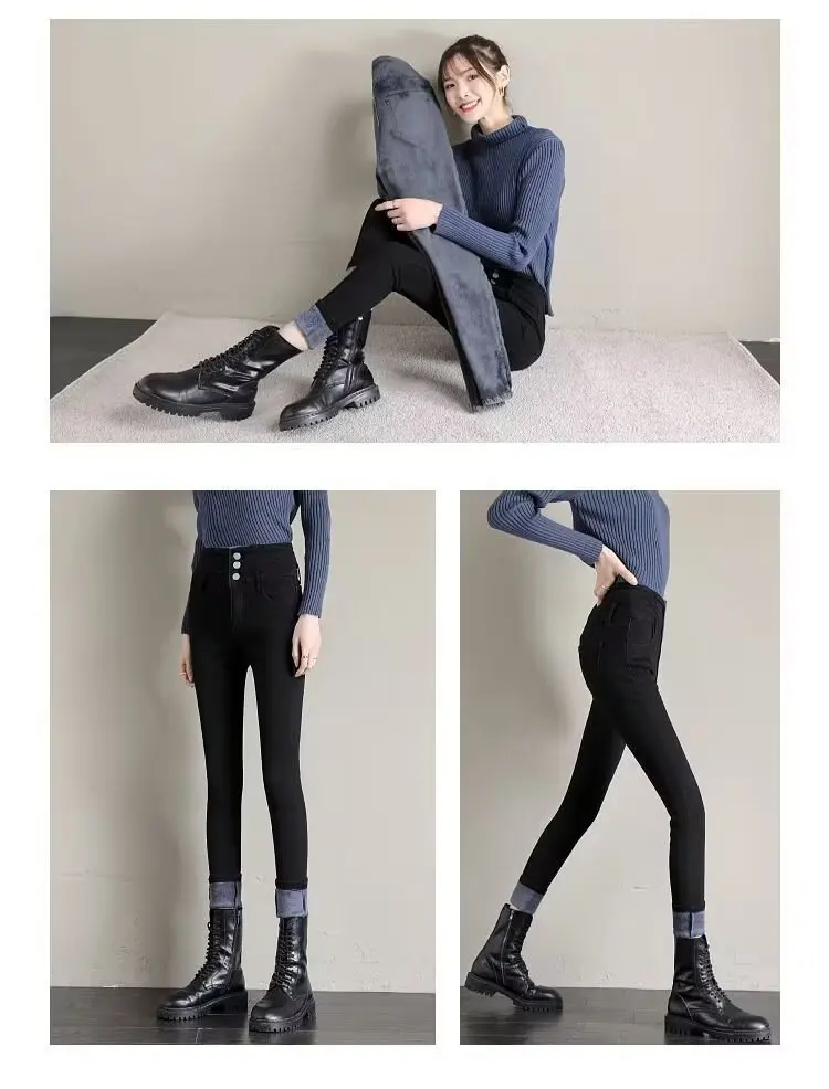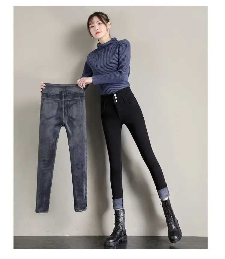 Featuring a fleece lining, these jeans offer extra warmth and comfort during the colder months, making them perfect for autumn and winter wear.