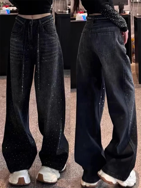 The wide leg style of these jeans offers comfort and freedom of movement, making them ideal for everyday wear.