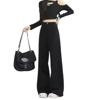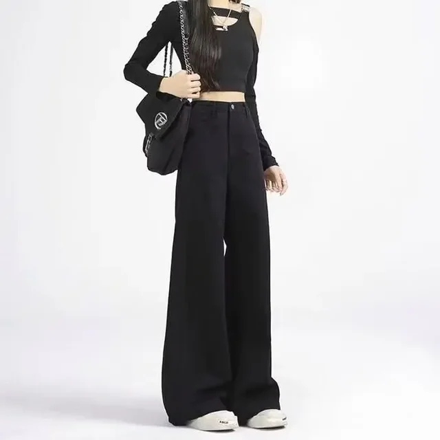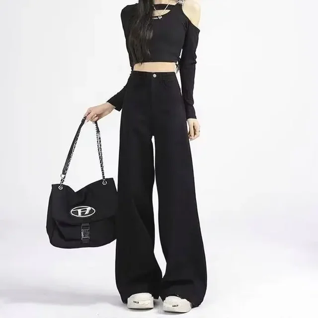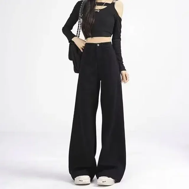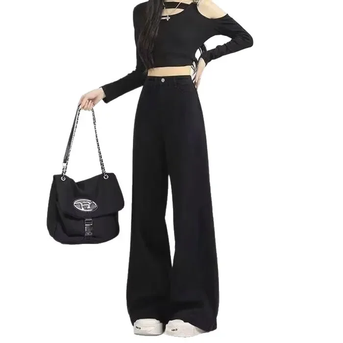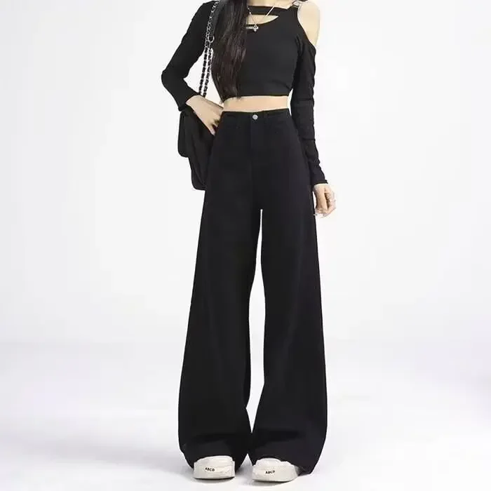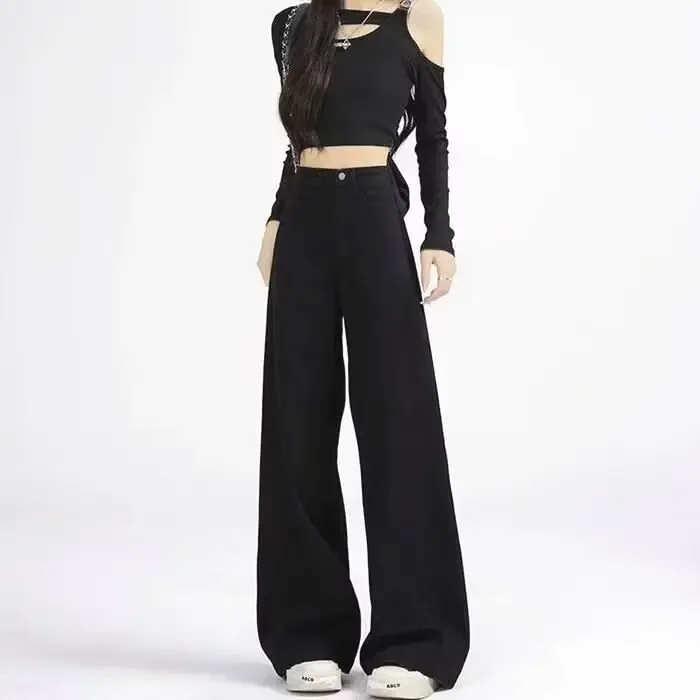 High Waist Wide Leg Black Denim Jeans for Women Summer New Style Loose Slimming Floor-Length Pants Retro Chic Spicy Girl