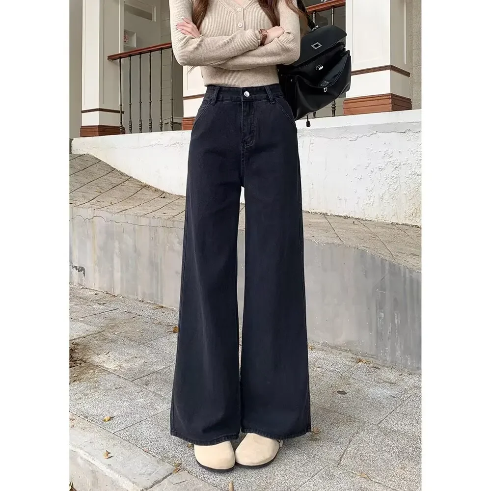 High Waist Wide Leg Black Denim Jeans for Women Summer New Style Loose Slimming Floor-Length Pants Retro