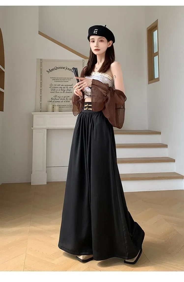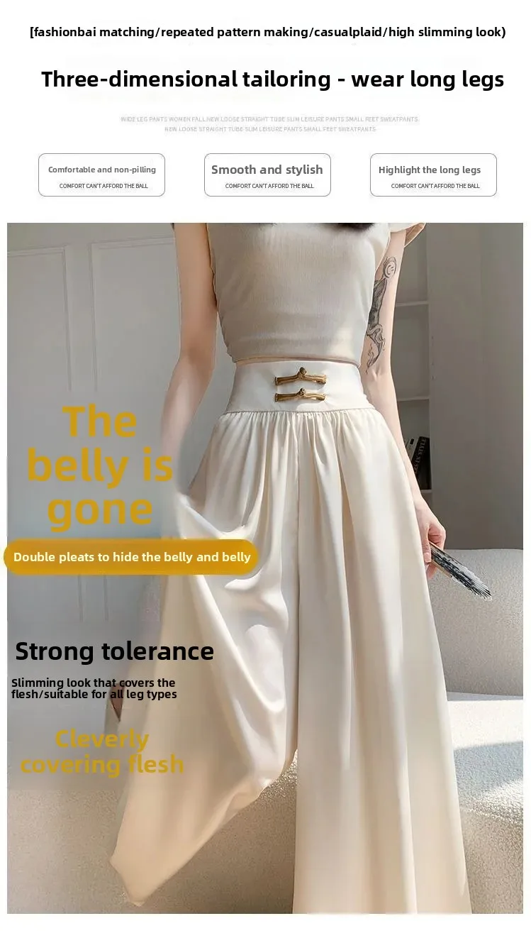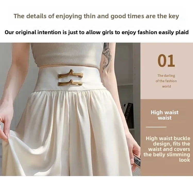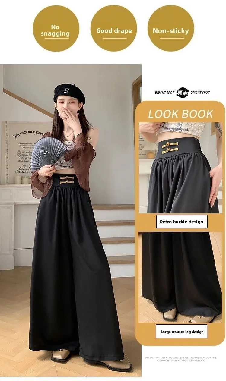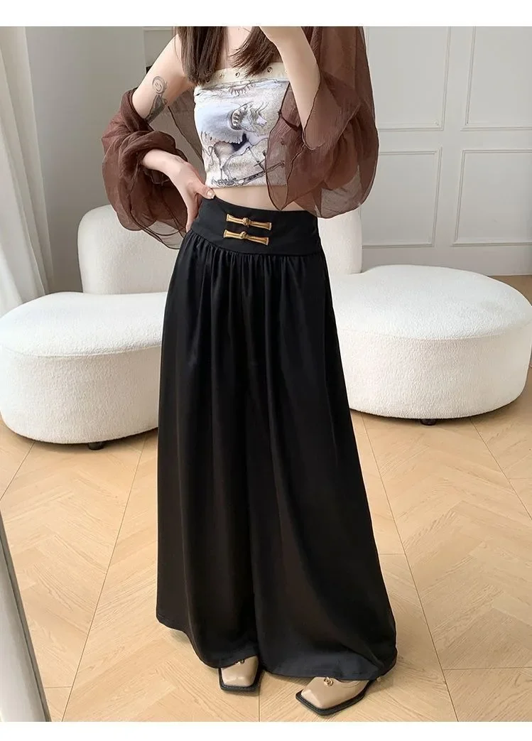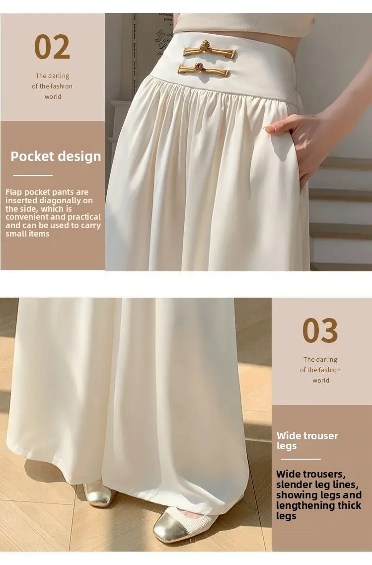 High Waist Wide Leg Pants Women's Spring Summer Ice Silk Snowglobe Loose Fit Casual Floor Length Trousers Chinese Style