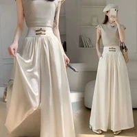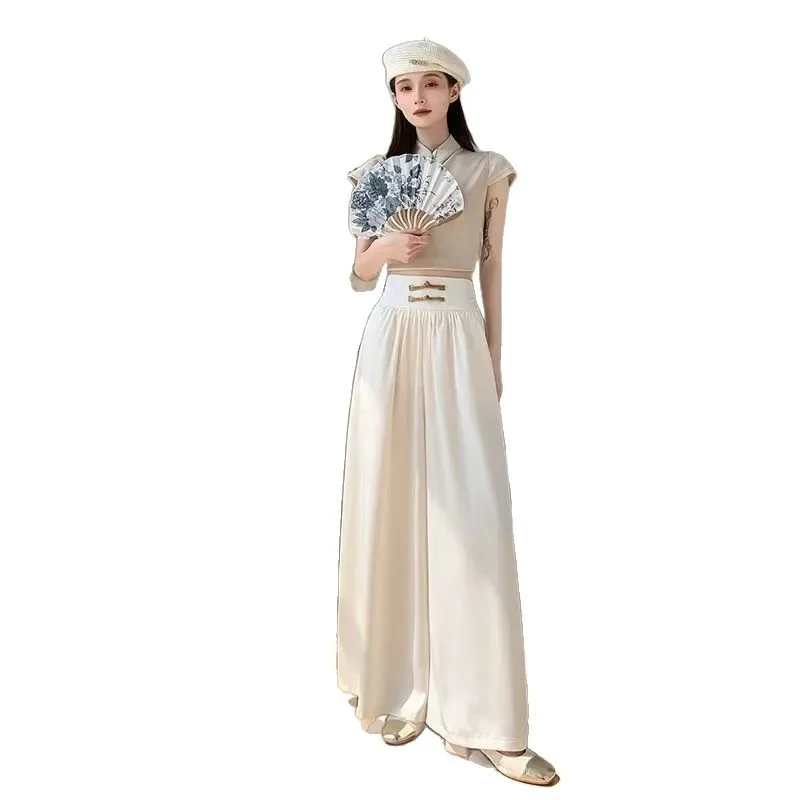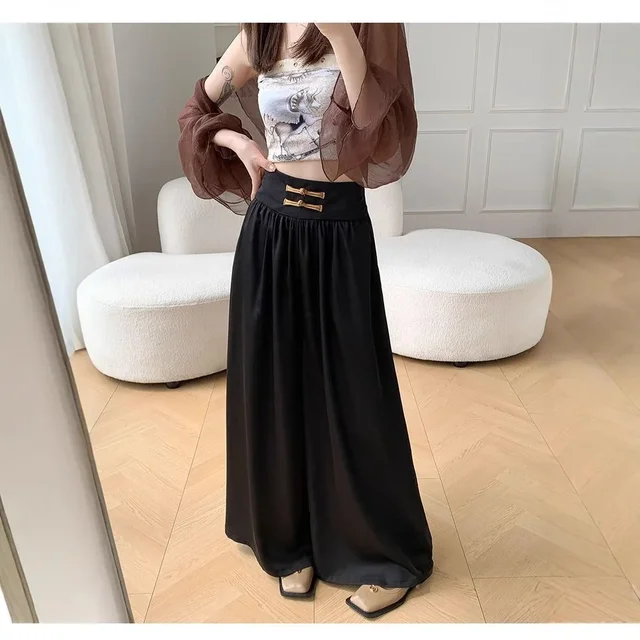 High Waist Wide Leg Pants Women's Spring Summer Ice Silk Snowglobe Loose Fit Casual Floor Length Trousers Chinese Style