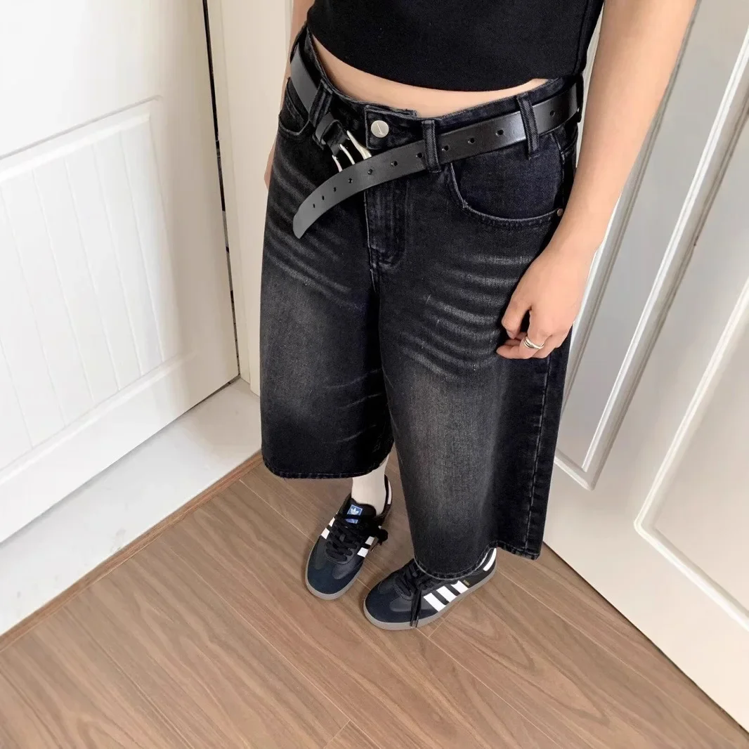 High Waist Wide Leg Seven-Five Denim Shorts Women's Loose Casual Washed Slim Straight Tube Pants Spring Summer New Style