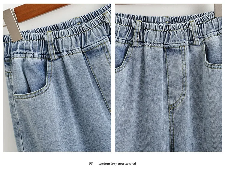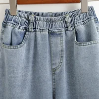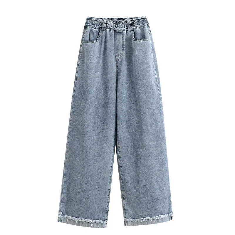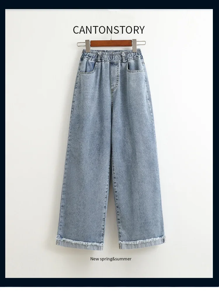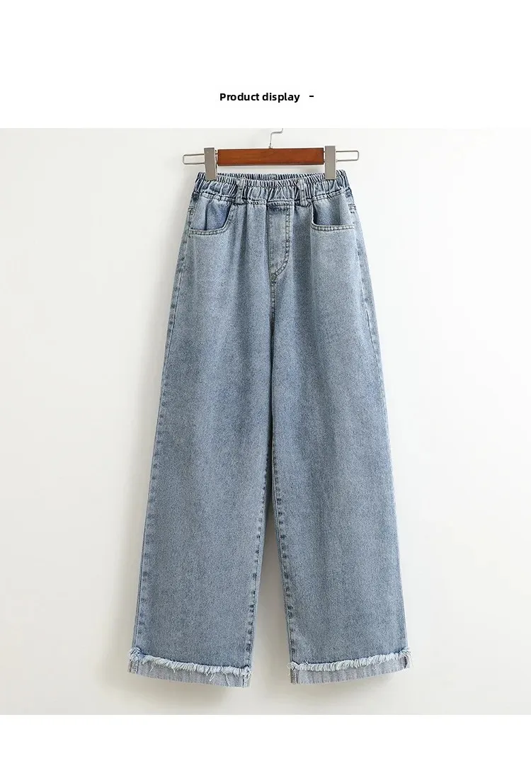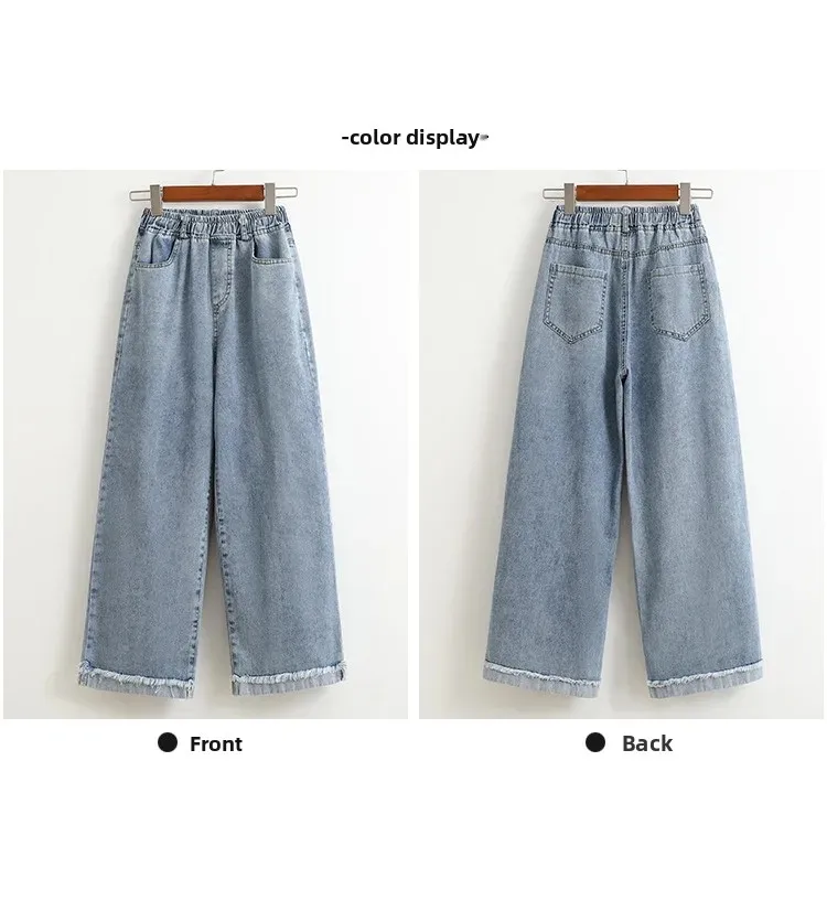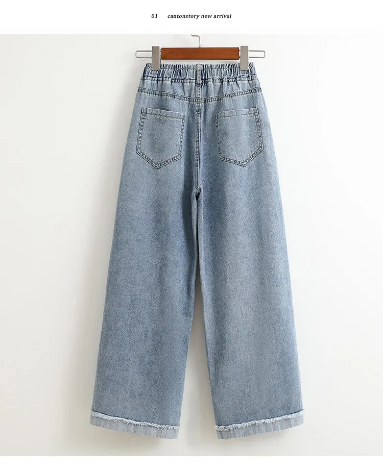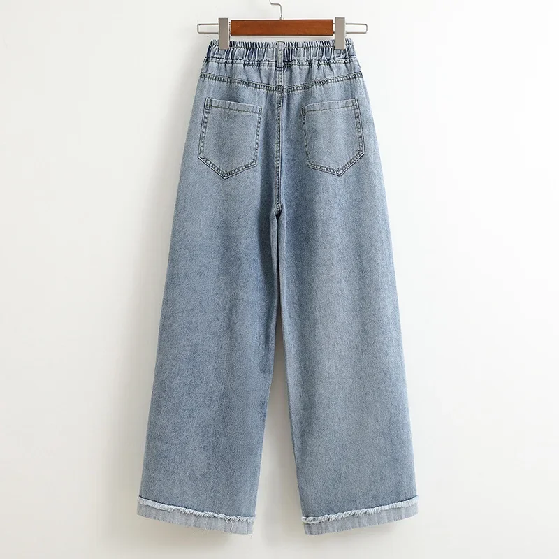 High Waist Wide Leg Straight Cut Cotton Jeans Women's plus Size Autumn Long Trousers Cuffed Nine Point Pants Washed Denim