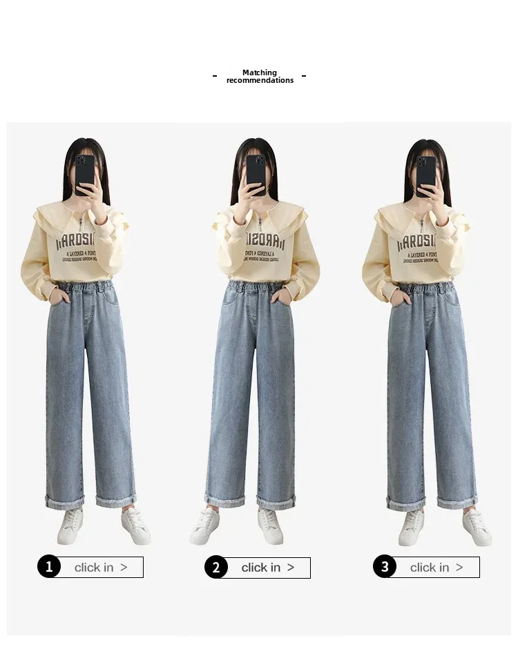 Be the first to review “High Waist Wide Leg Straight Cut Cotton Jeans Women’s plus Size Autumn Long Trousers Cuffed Nine”