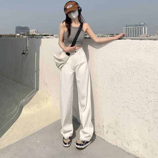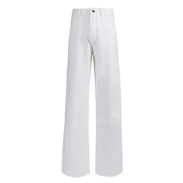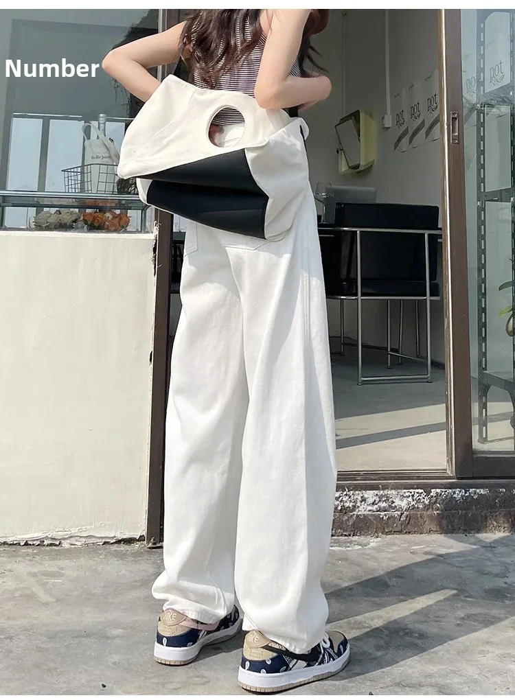 High Waist Wide Leg White Jeans Women’s Slimming Loose Small Size Pants Drapey Floor-Length Trousers