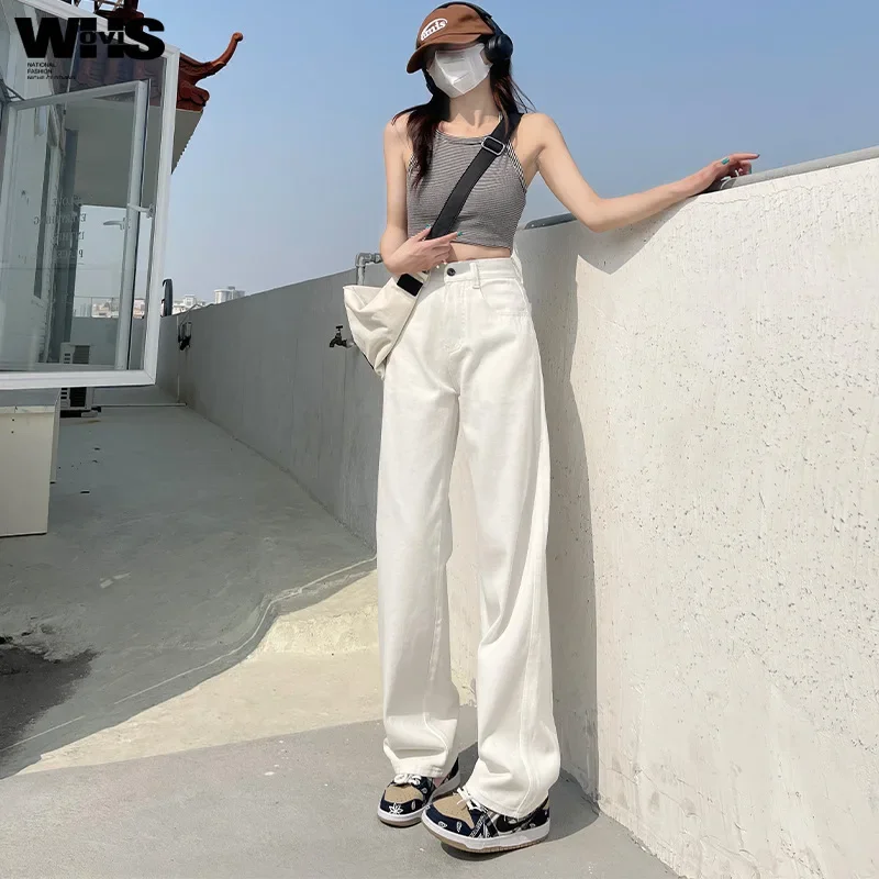 High Waist Wide Leg White Jeans Women's Slimming Loose Small Size Pants Drapey Floor-Length Trousers New Hot Sale Of The Season