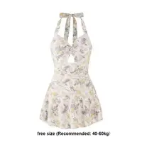 Backless, Lace-up, Floral Pattern, Slim Fitting, High Waisted, Quick Drying, Sexy, Chest Pad without Steel Support