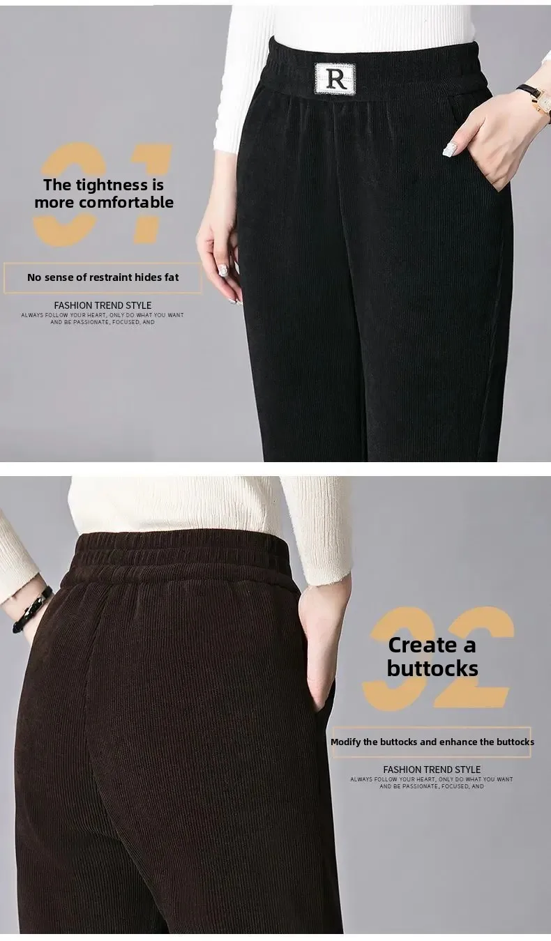 • High Waist Design : The high waist design of these corduroy pants accentuates your figure, providing a slimming effect and a stylish silhouette.