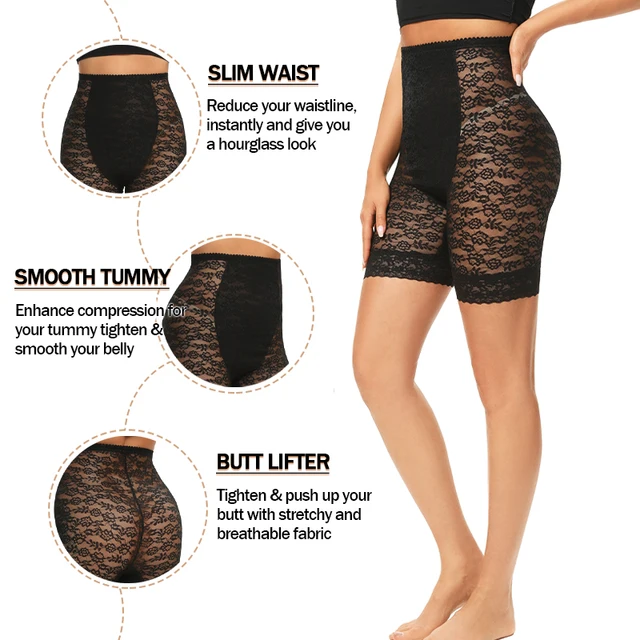 BREATHABLE MATERIAL — Use nylon and spandex fabric, the ladies tummy control panties is elstic,lightweight, comfortable and skin-friendly. Soft mesh and lace design are breathable enough for you wear all day. The girdle surface and the thighs hem decorate with jacquard lace make it look more beautiful and not dull.