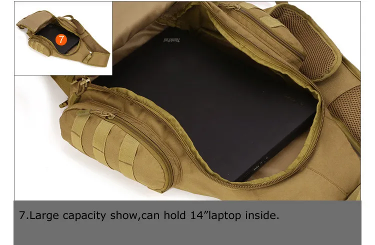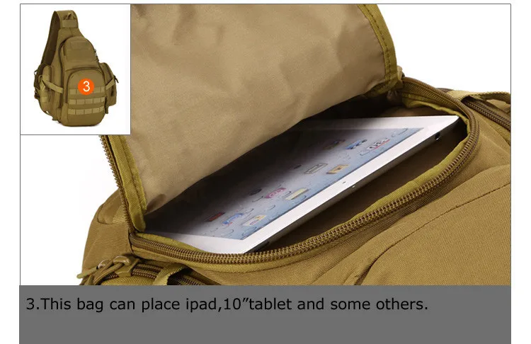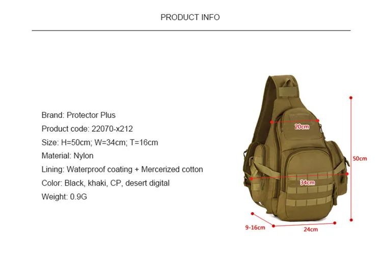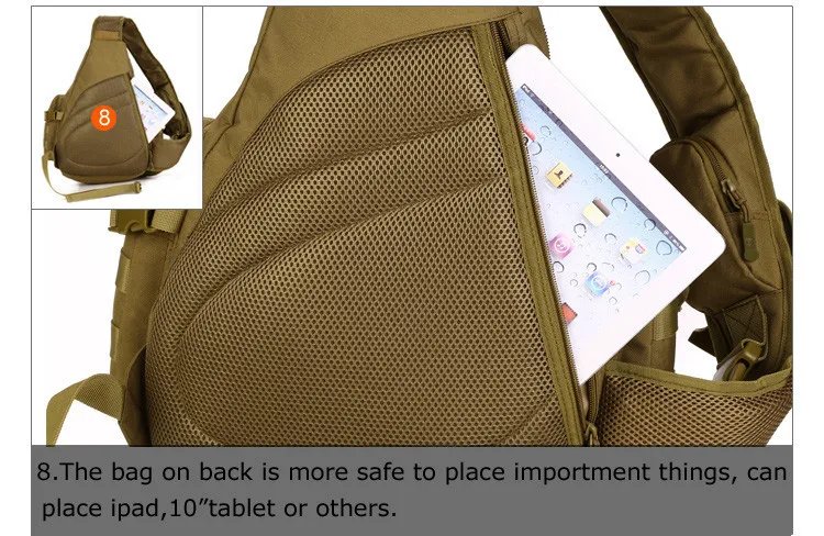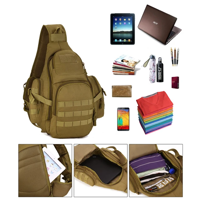 100%brand new and high quality.Full Size:Height 50cm/19.68″;Thickness 9-16cm/3.54″-6.29″;Width 34cm/13.38″;Material:durable nylonLining:waterproof nylonColor:black,khaki,dersert digitalWeight:0.9kgCapacity:20-35L,can hold Ipad,14 inch laptop,A4 book,and some other necessity.Function:chest bag,shoulder bag,back pack.Package include:1*sling shoulder bag(Note:Only include the bag, other decorations or water bottle for illustration is not included in the picture.)