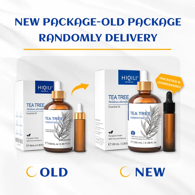 HIQILI 100% Pure Tea Tree Essential Oil is a natural, undiluted, and therapeutic-grade oil extracted from the leaves of Melaleuca alternifolia. With powerful antiseptic, antifungal, and antibacterial properties, it is perfect for skin care, hair care, aromatherapy, and home cleaning.