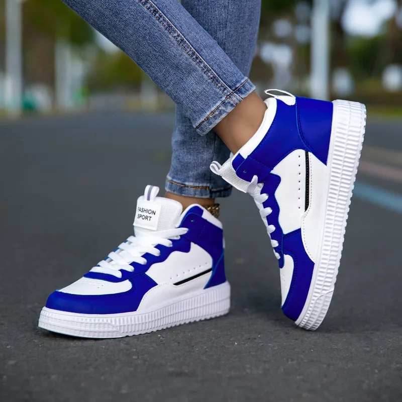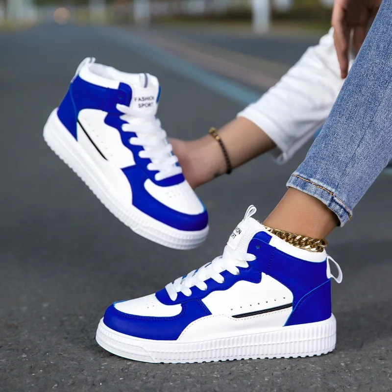 HKDQ Blue High Top Sneakers Unisex Non Slip Platform Men’s Skate Shoes Spring Autumn Casual Leather