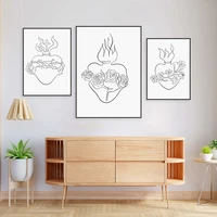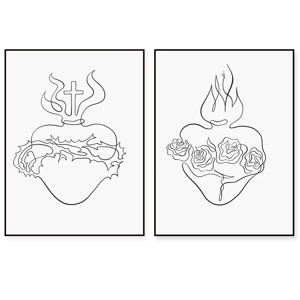 Holy Family Heart Art Print Sacred Heart of Jesus, Immaculate Heart of Joseph Catholic Line Art Wall