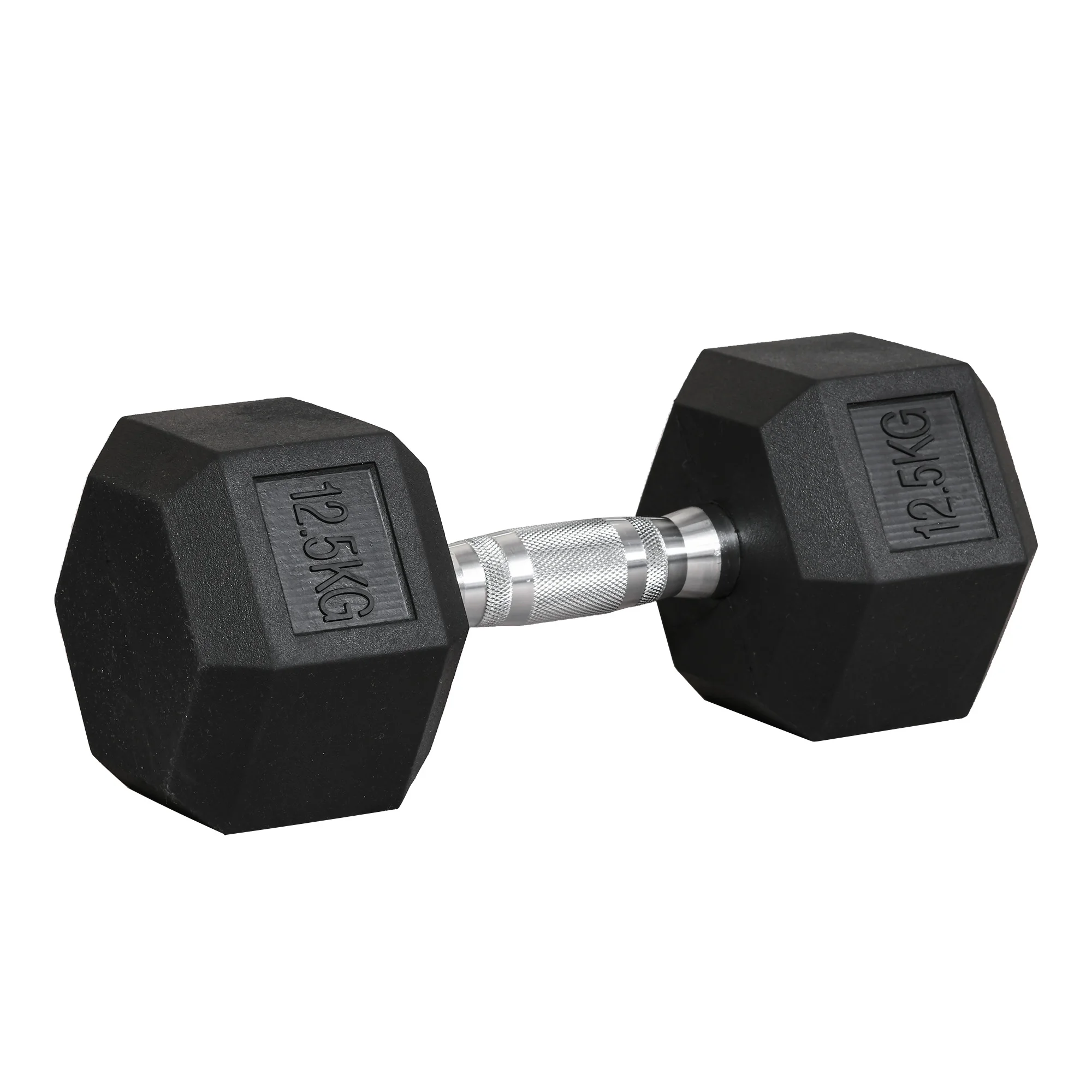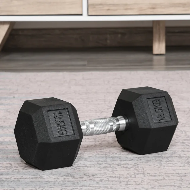 HOMCOM 12.5KG Single Rubber Hex Dumbbell Portable Hand Weights Dumbbell Home Gym Workout Fitness Hand Dumbbell