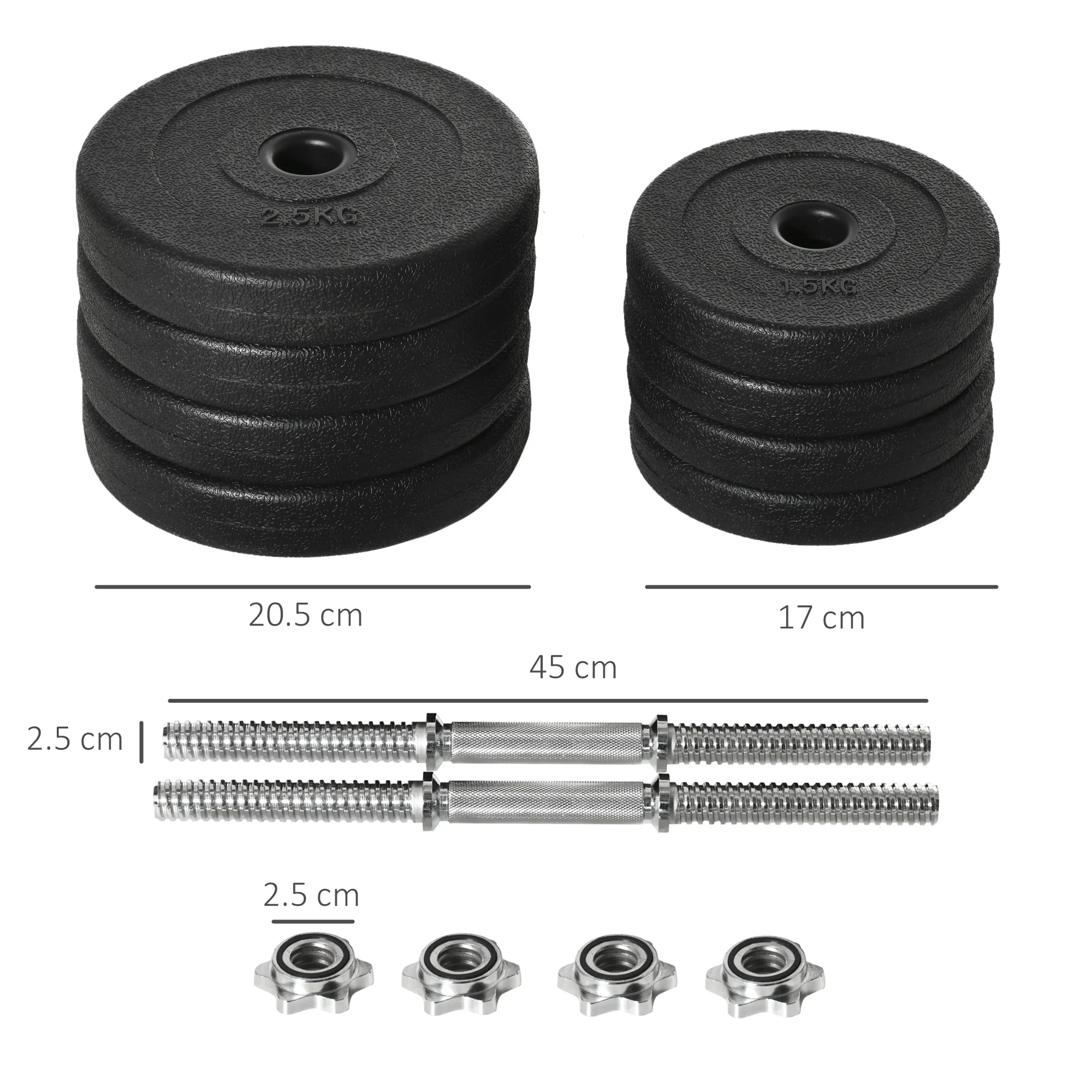 ● Comes with 4 x 2.5kg and 4 x 1.5kg weights, as well as 2 x 2kg connecting rods