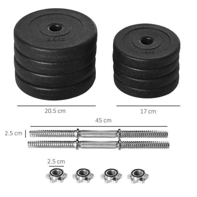 HOMCOM 20KG Adjustable Weights Dumbbells Set, Dumbbell Hand Weights for Home Office Gym Body Fitness
