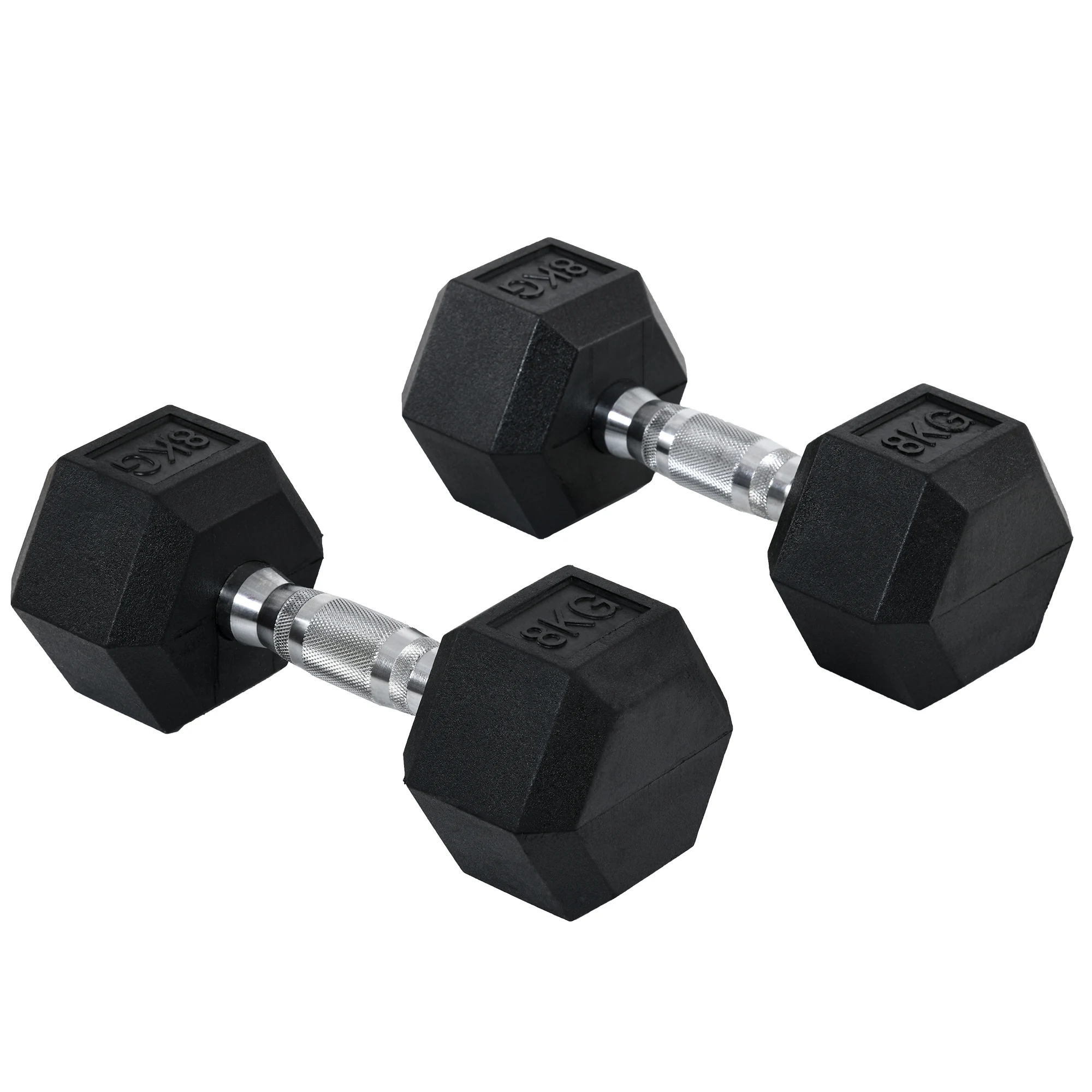 HOMCOM Rubber Dumbbell Sports Hex Weights Sets Home Gym Fitness Hexagonal Dumbbells Kit Weight Lifting Exercise (2 x 8kg)