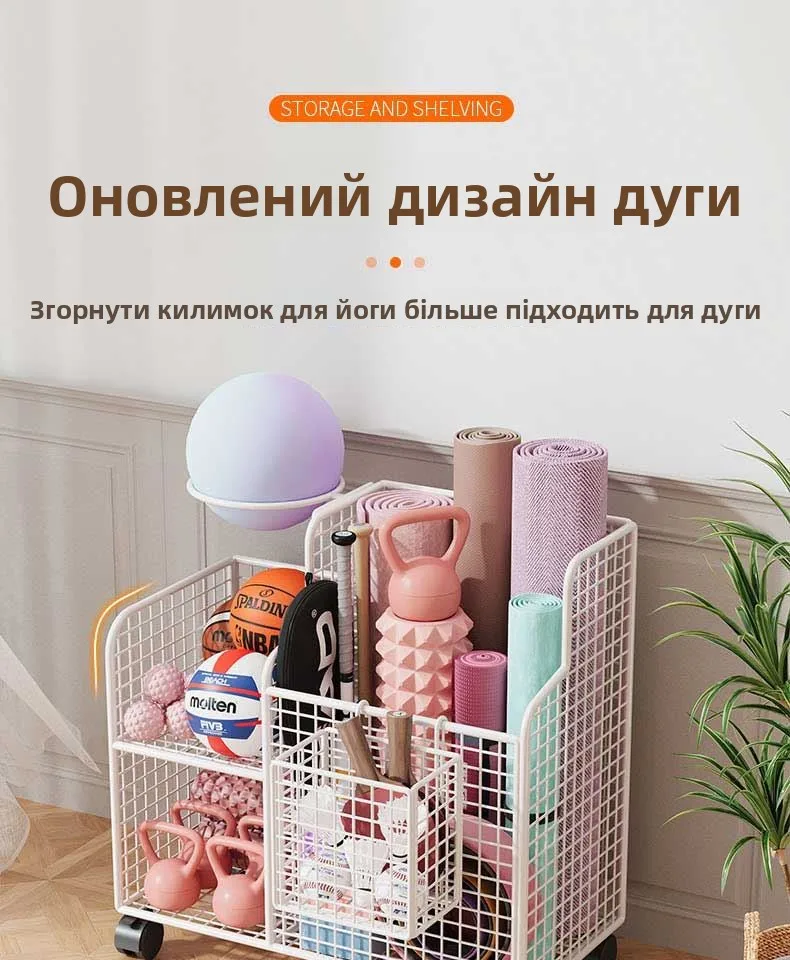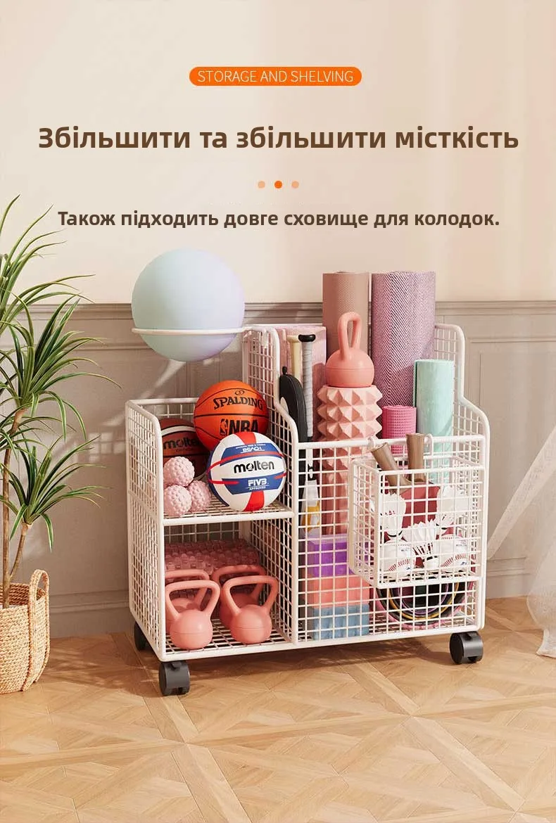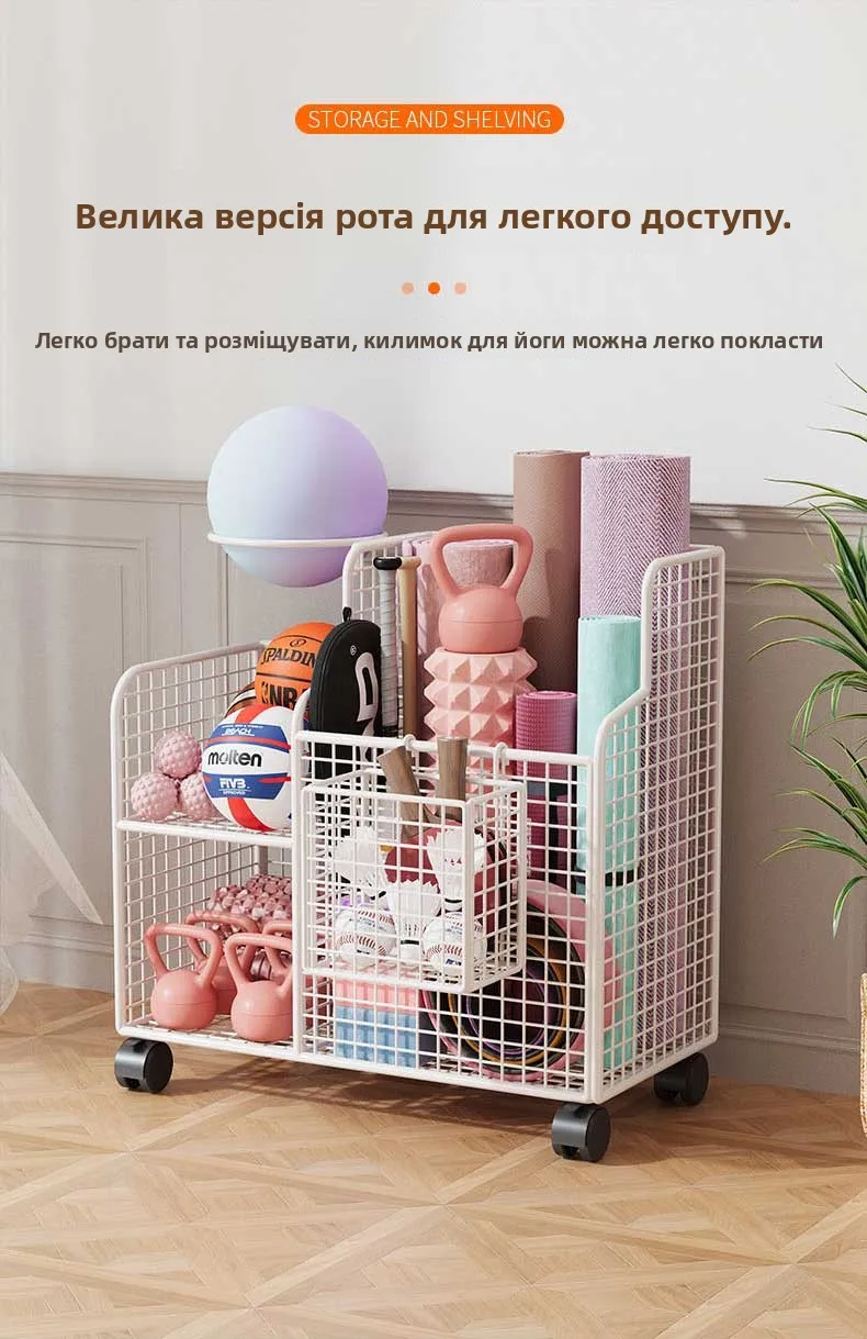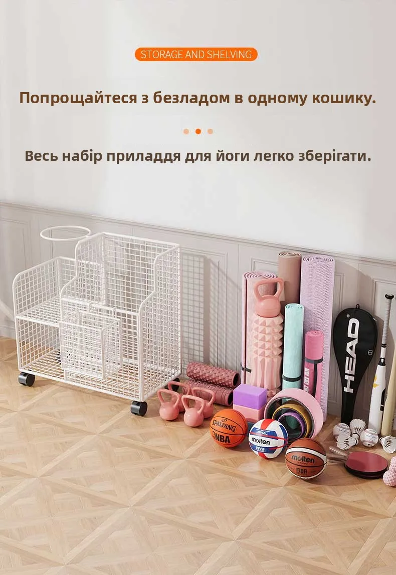This Yoga Mat Storage Basket is a versatile solution for organizing your home gym equipment, including badminton rackets, dumbbells, and basketballs.