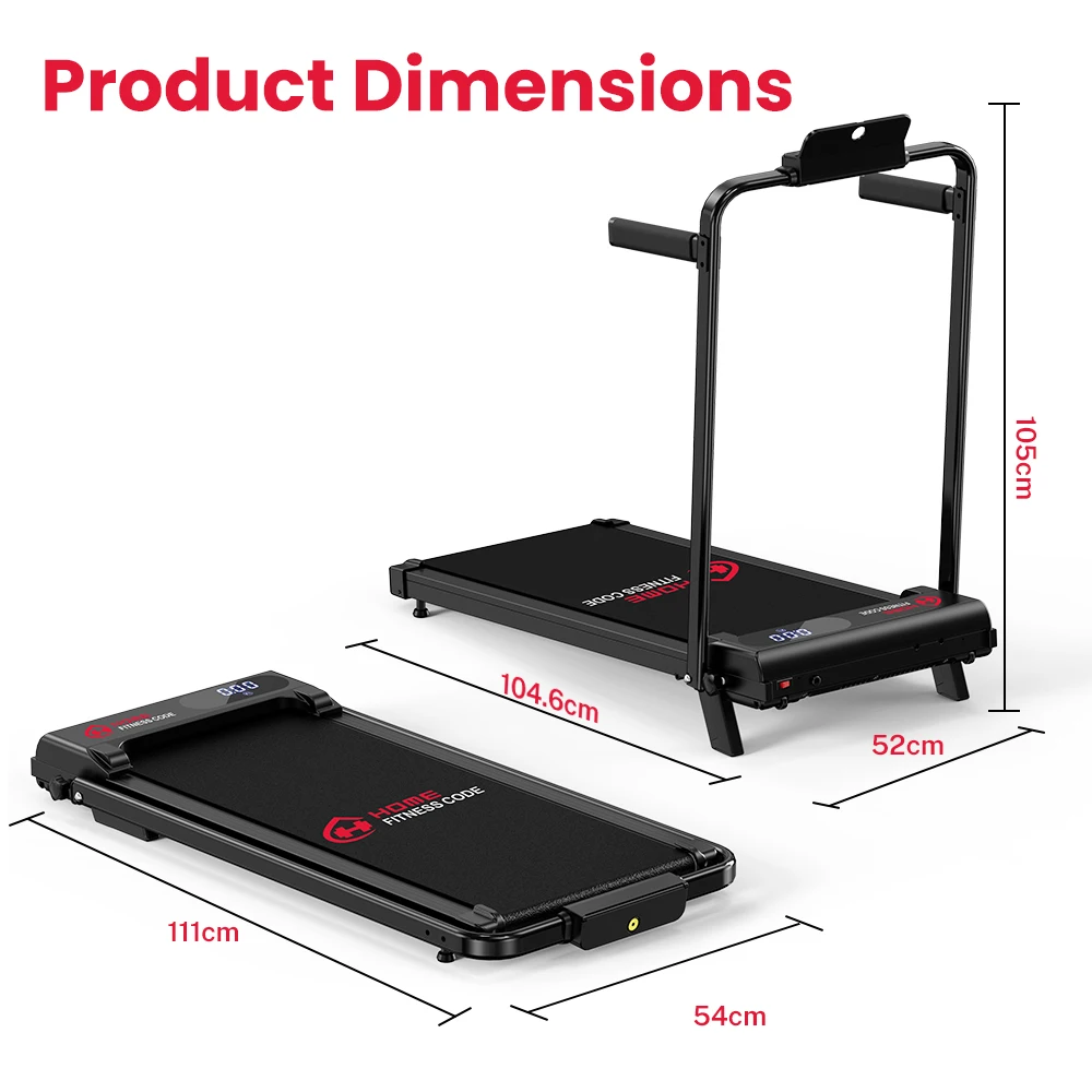 –Dual Mode Design – Use it as a walking pad with the handrail folded down or as a jogging treadmill with the handrail up for extra stability.