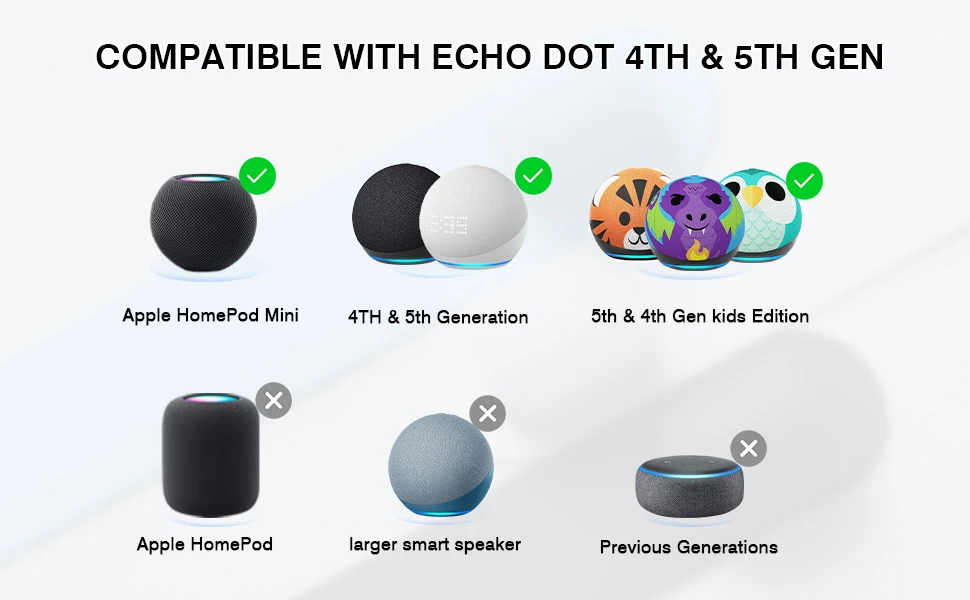 5.【Need to Pay Attention】The product we sell is only the STAND, and the package only has the stand, Echo Dot is not included. And the Madatop Echo Dot Stand does not match the Echo (4th/5th generation) because of the size.
