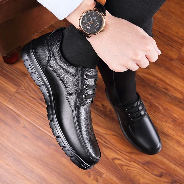 Hot Sale Men Genuine Leather Casual Shoes Soft Sole Lace-up Luxury Brand Middle-aged Old Man Dad Lightweight
