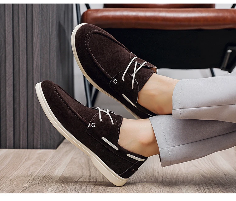 Hot Sale Men's Brown Loafers Comfortable Flat Suede Loafers Man Low Cut Casual Slip-On Shoes Men Driving Shoes chaussure hommes