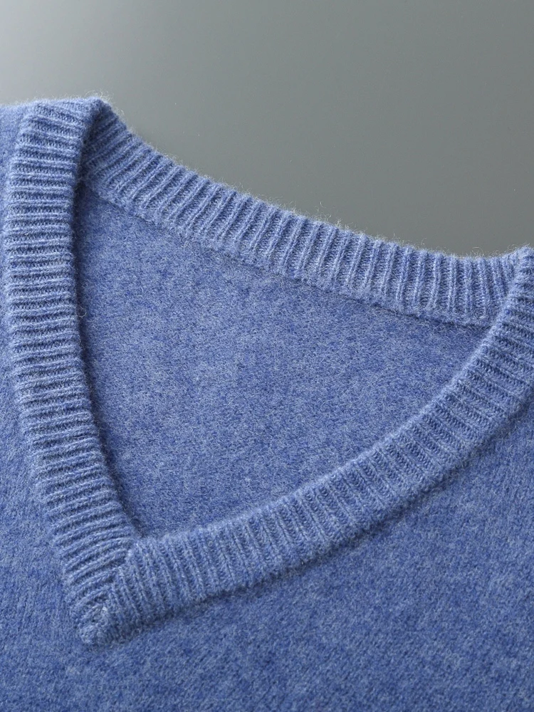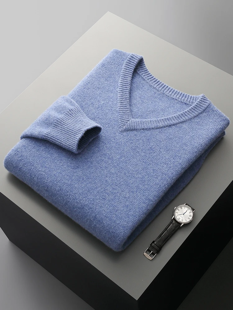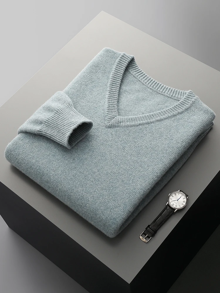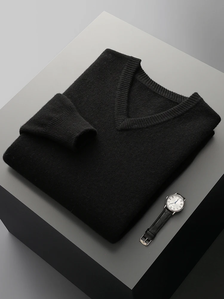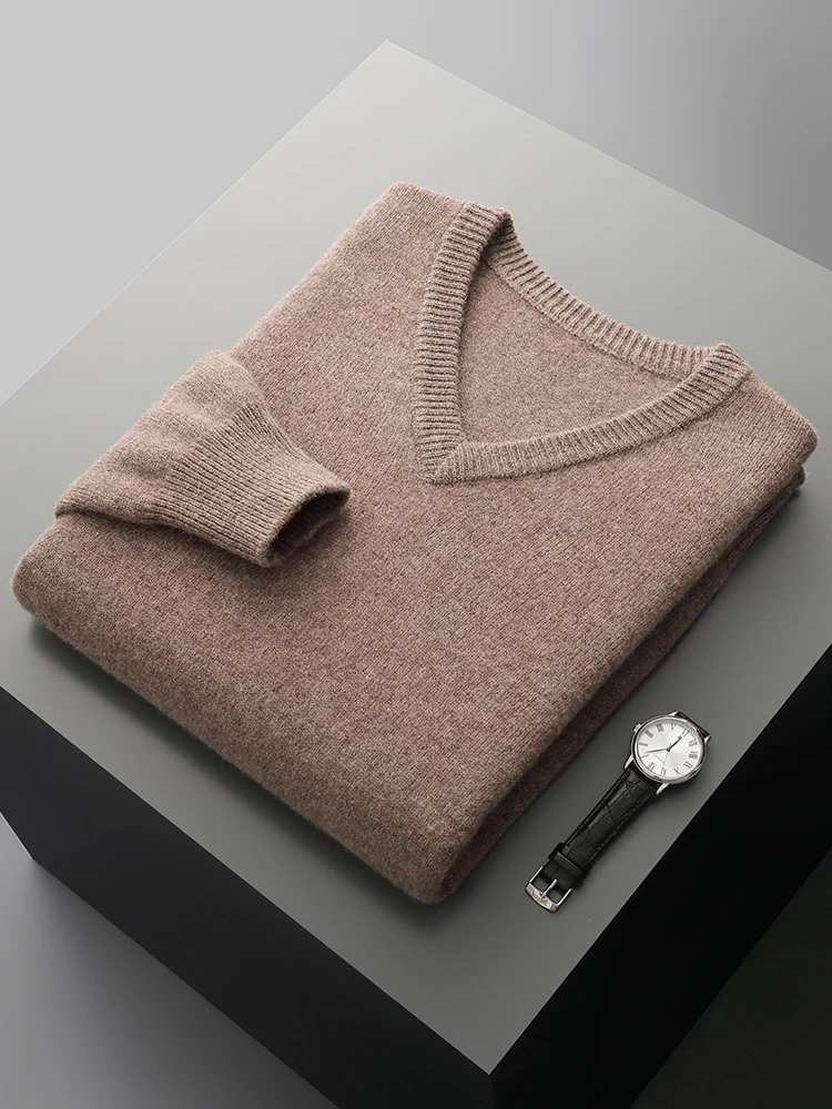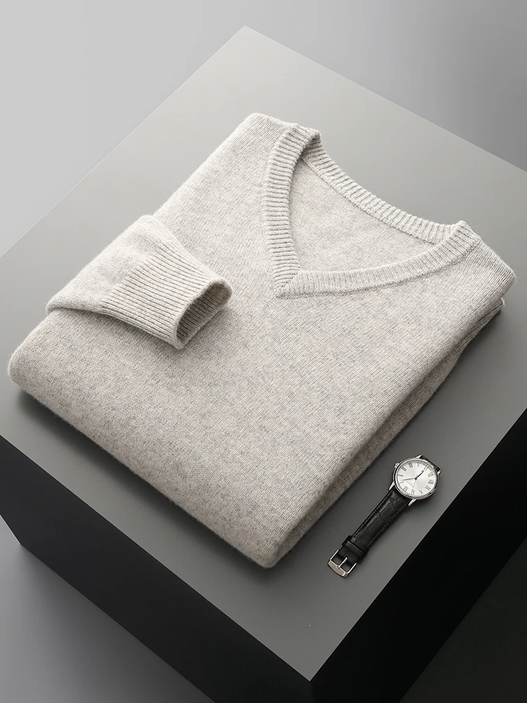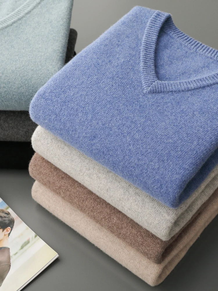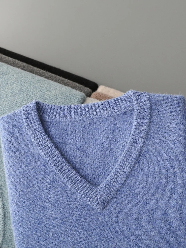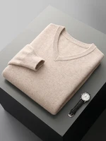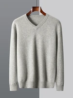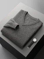 Hot Sale Men's Sweater Pullover 100% Merino Wool  Clothes Autumn Winter Sweater Knitted V-Neck Commuting Soft Thicked Versatile