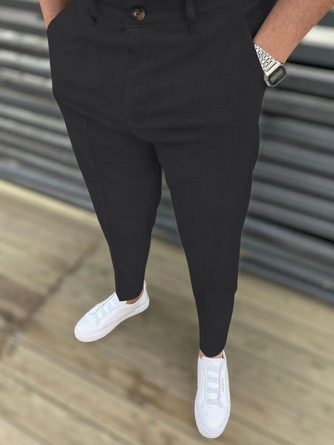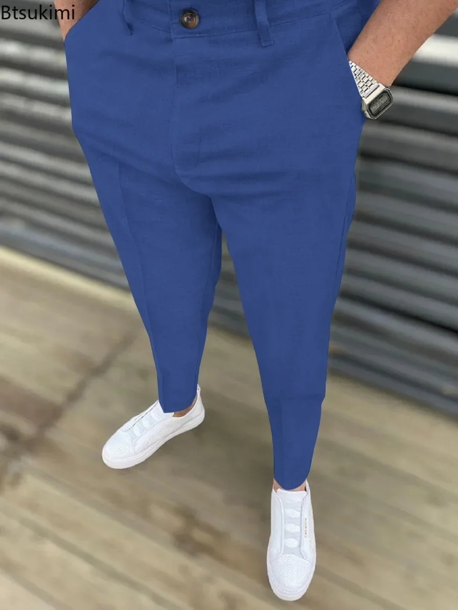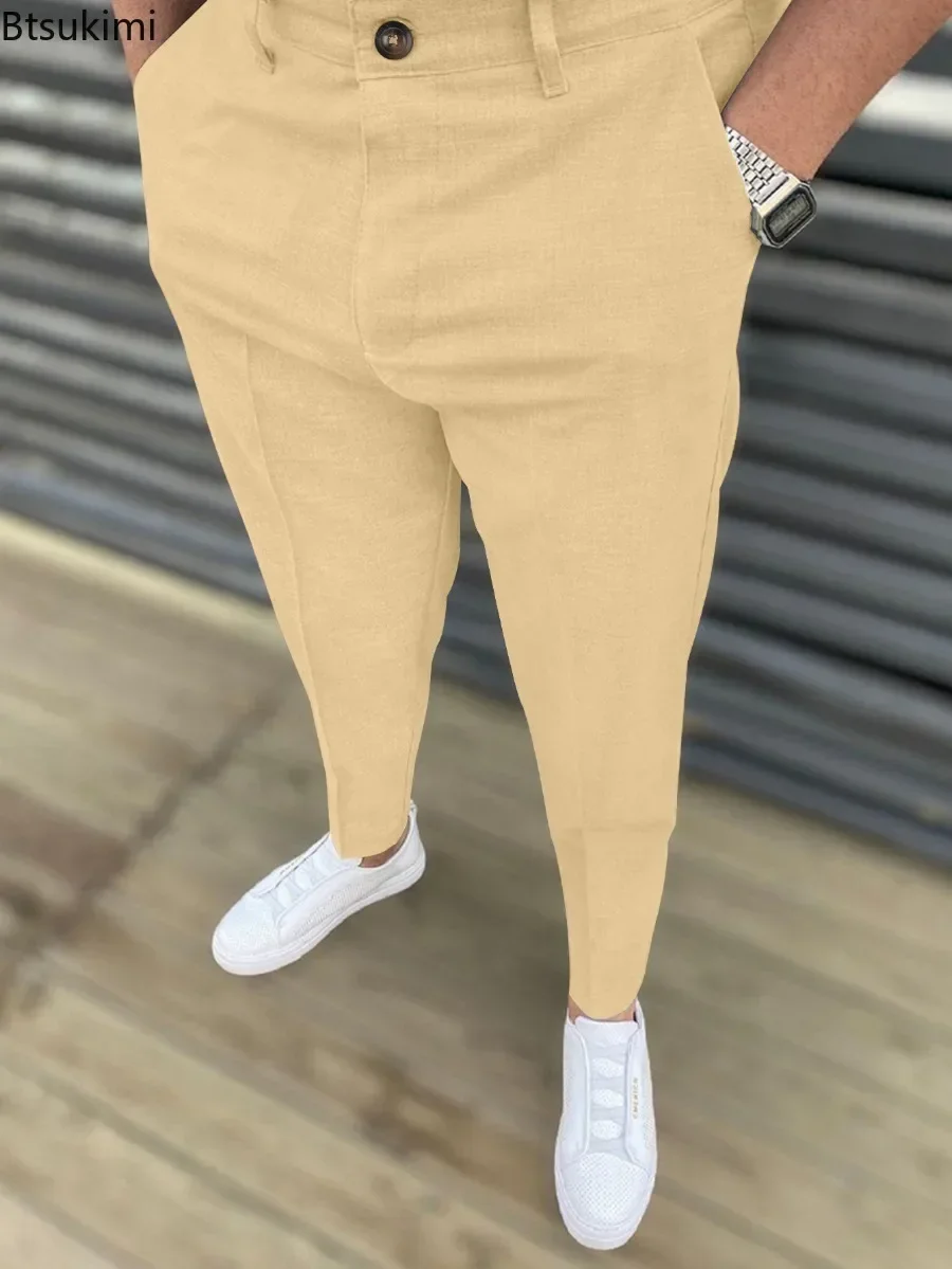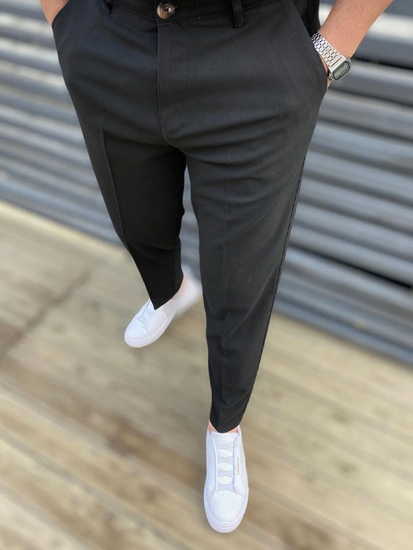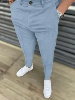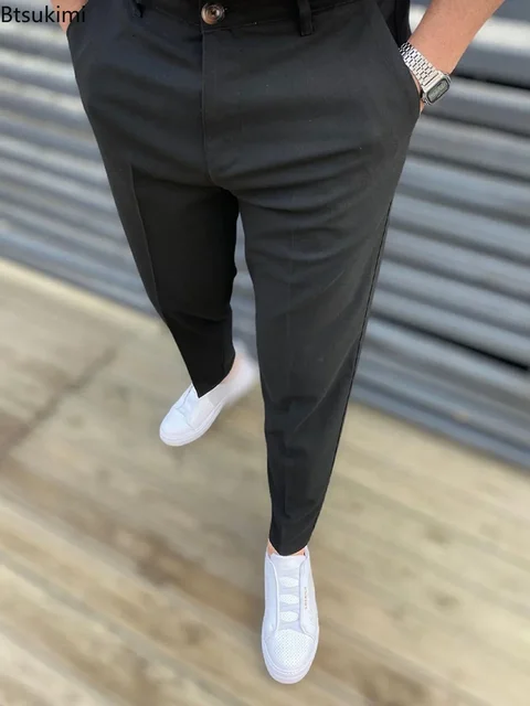 Hot Sale New Men’s Casual Pants Fashion Solid Mid Waist Pencile Pants Business Office Social Trousers Male Slim Daily Wear Pants