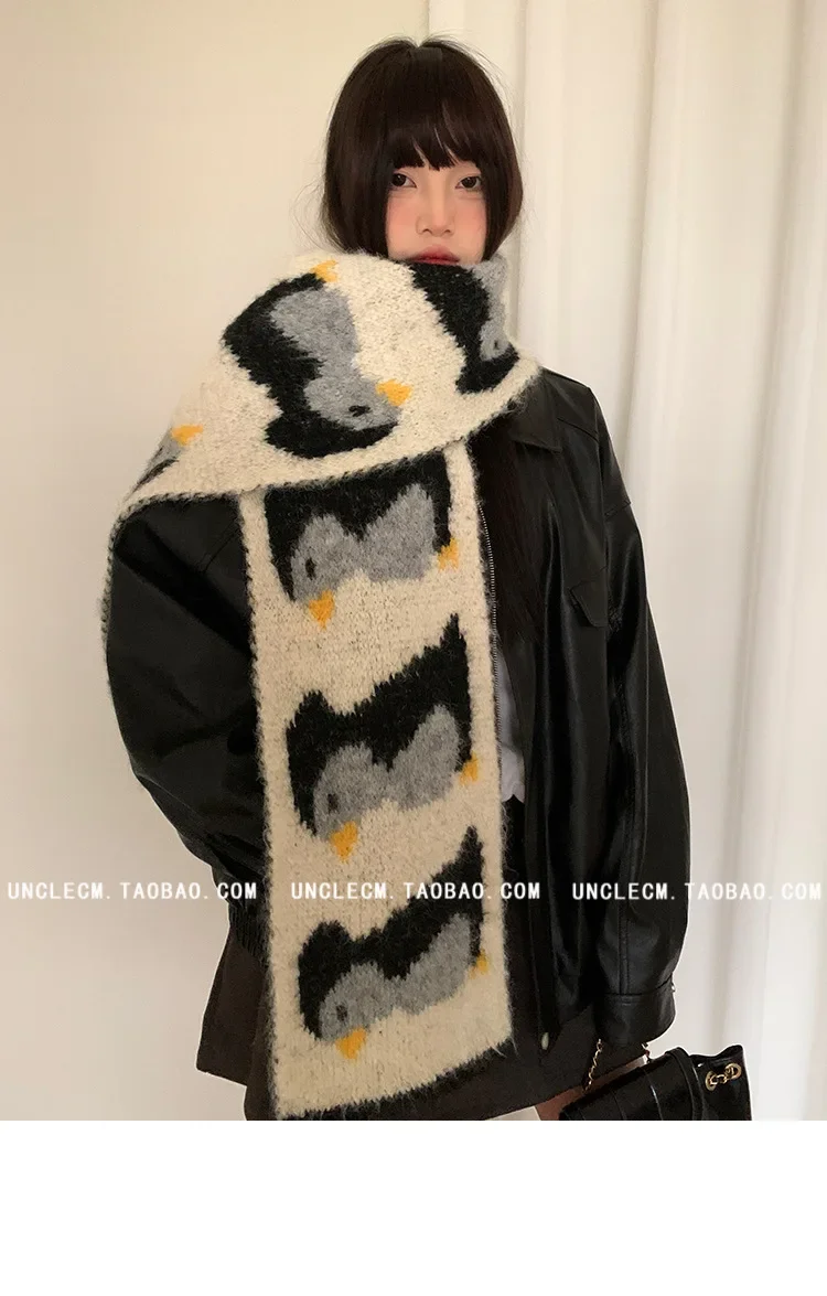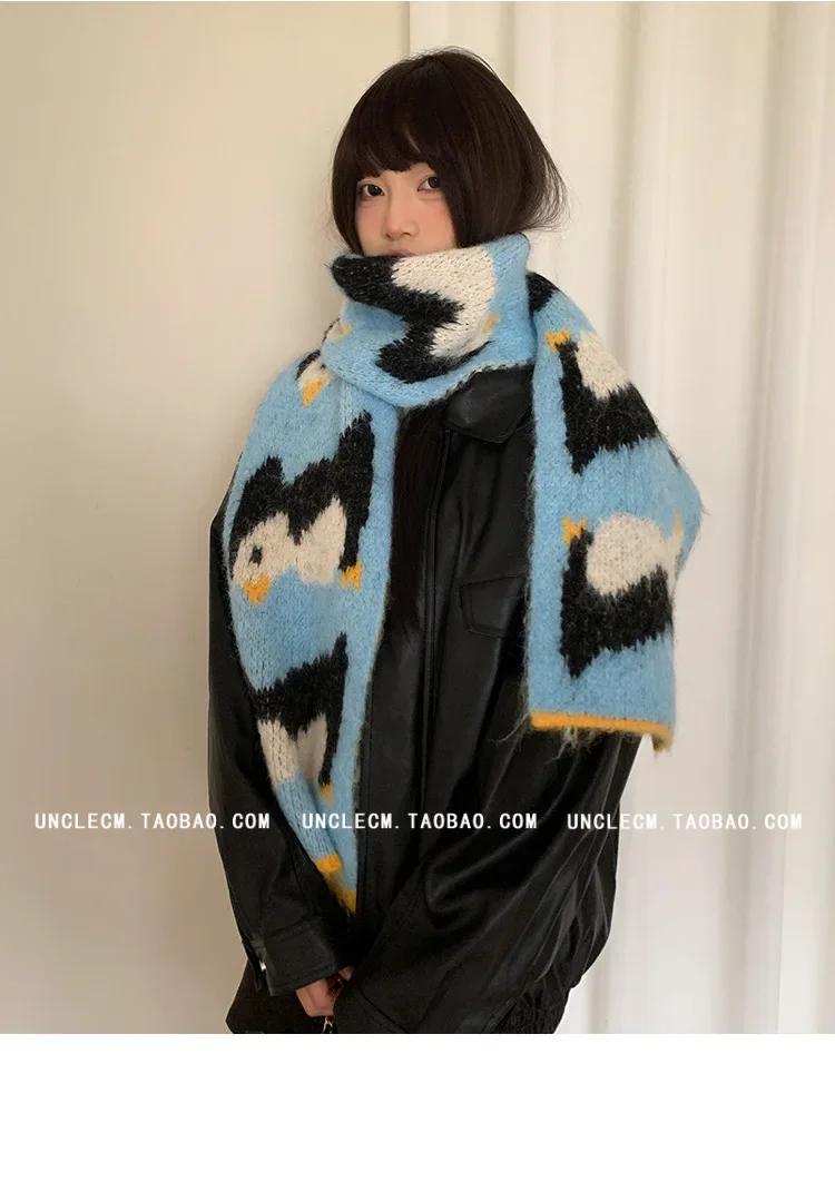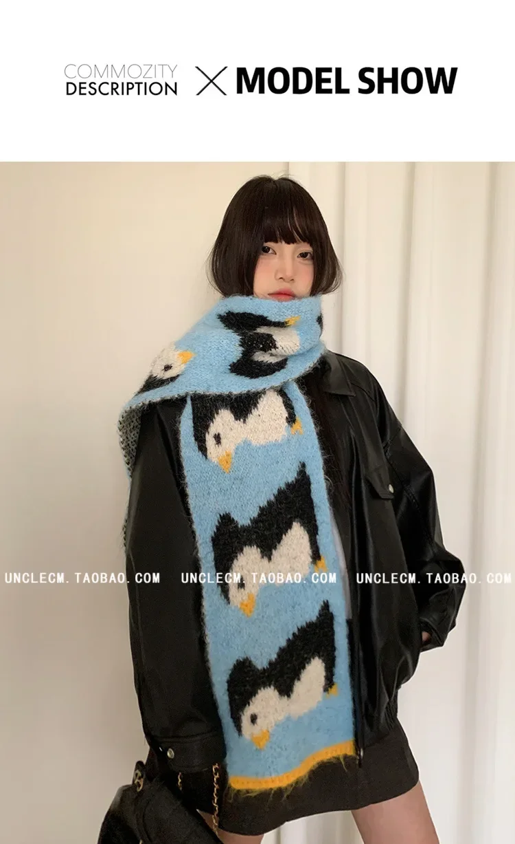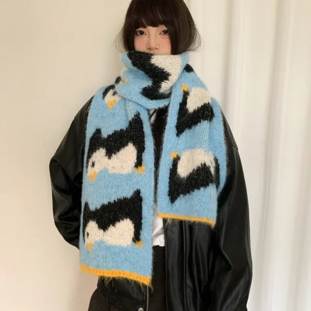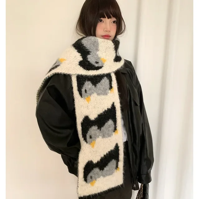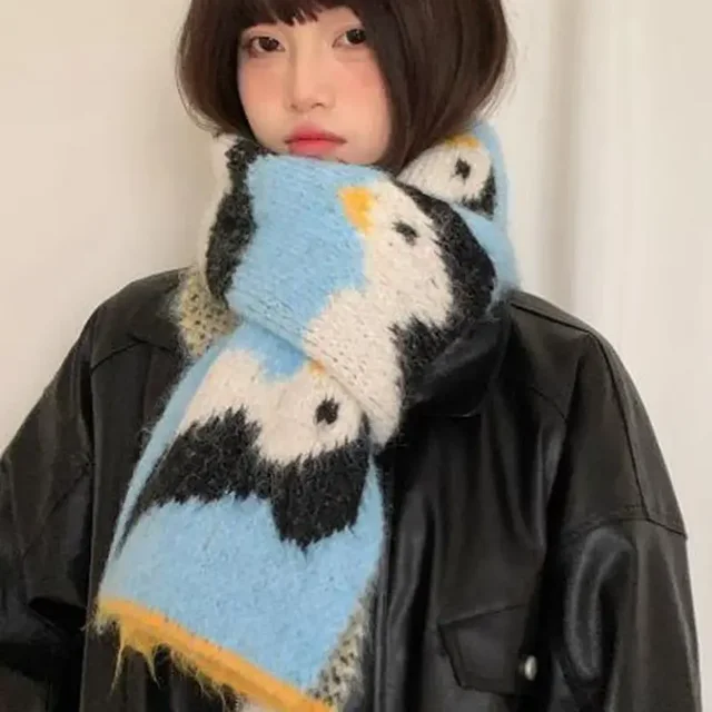 • Korean Style Design : This scarf features a cute cartoon penguin design, adding a touch of Korean style to your winter wardrobe.