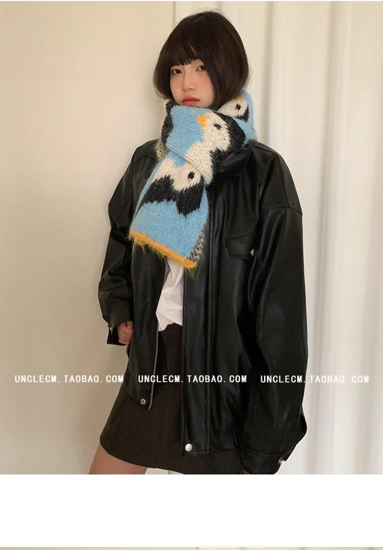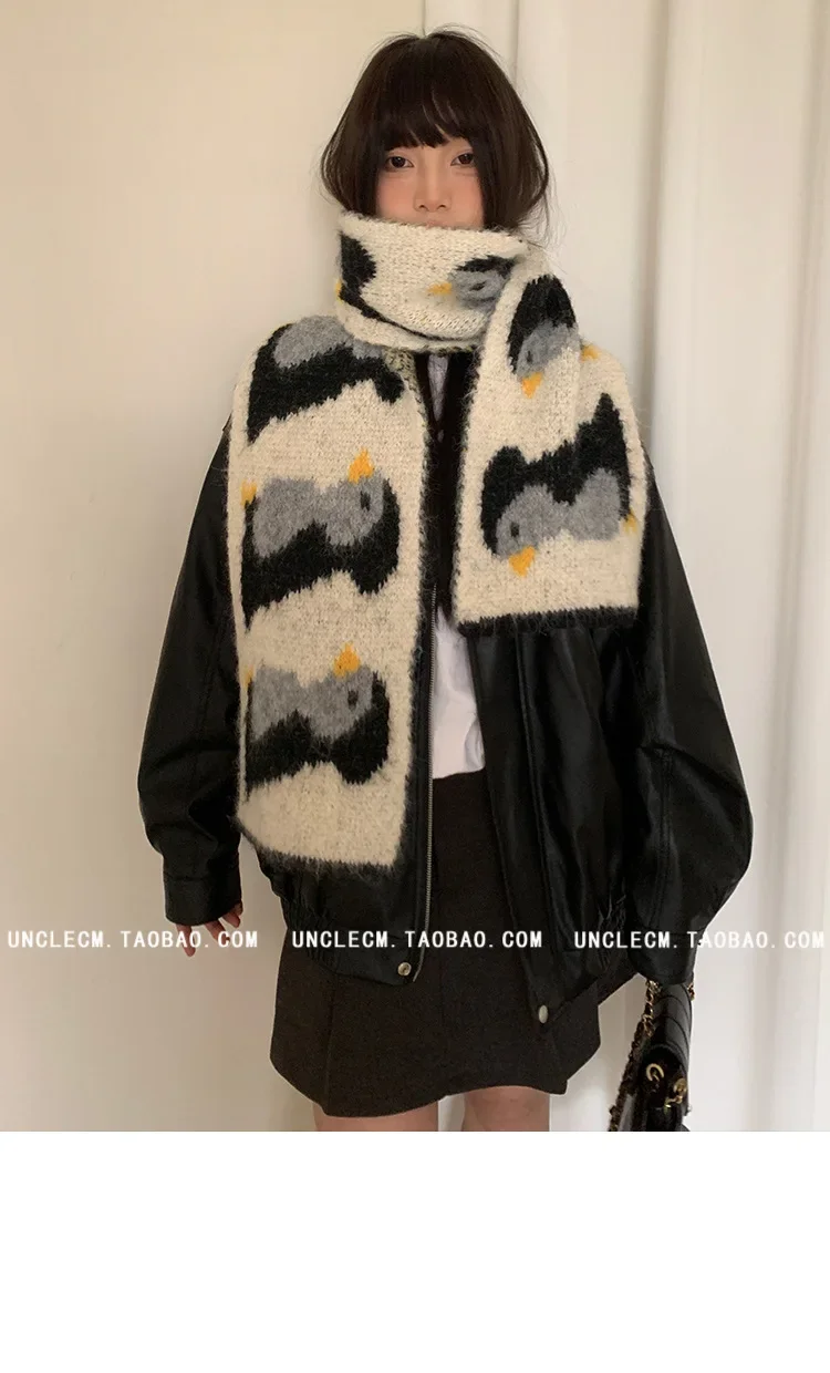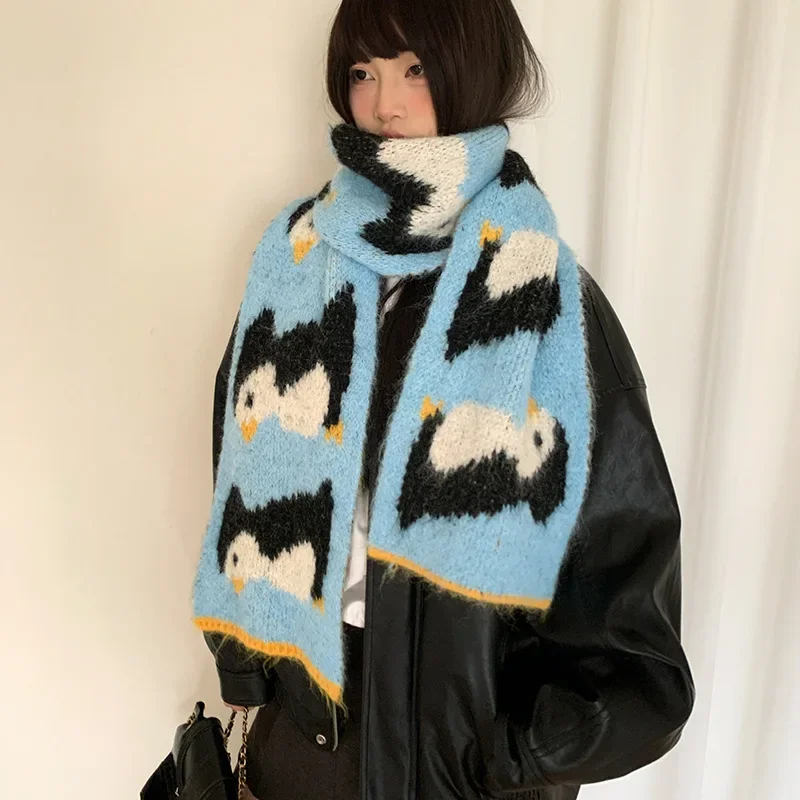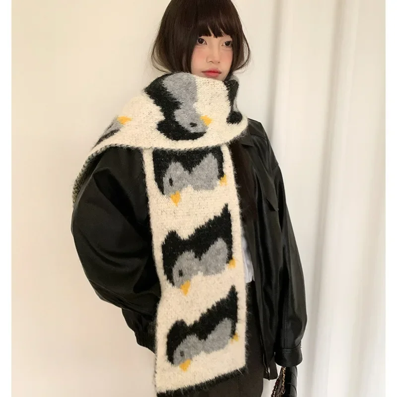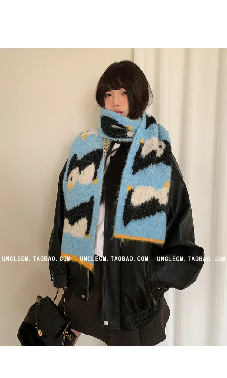 • Korean Style Design : This scarf features a cute cartoon penguin design, adding a touch of Korean style to your winter wardrobe.