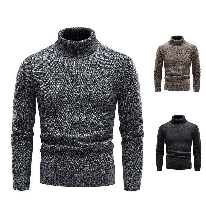 Hot Sale Of The Season New Men’s High Collar Fleece Lined Knitwear Casual Long Sleeve Overhead