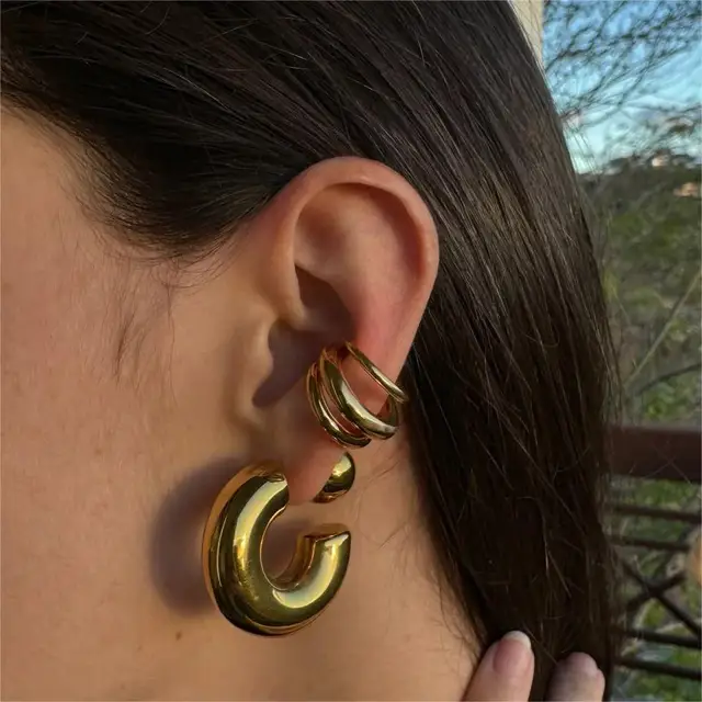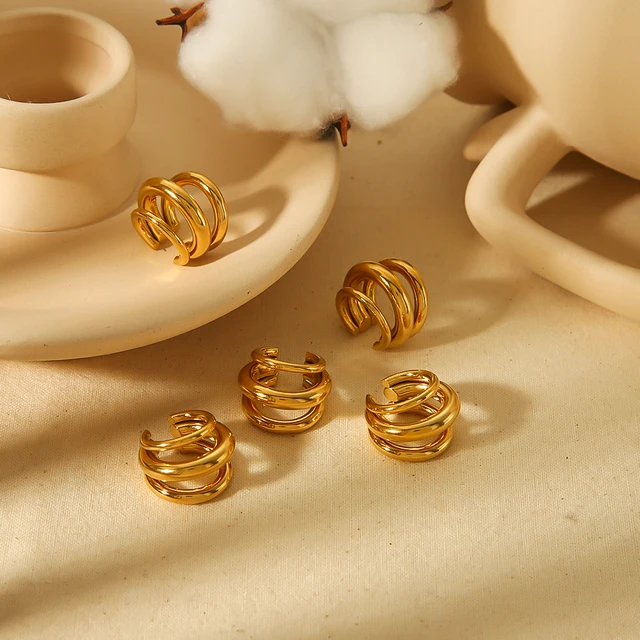 Hot Selling 18K Gold Color Stainless Steel Multilayer Ear Clip Waterproof Metal Unique Fashion Trendy