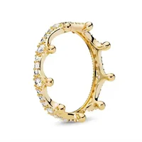 Hot selling 925 sterling silver gold ring, sparkling luxury charm, round crown, heart-shaped ring, fashionable