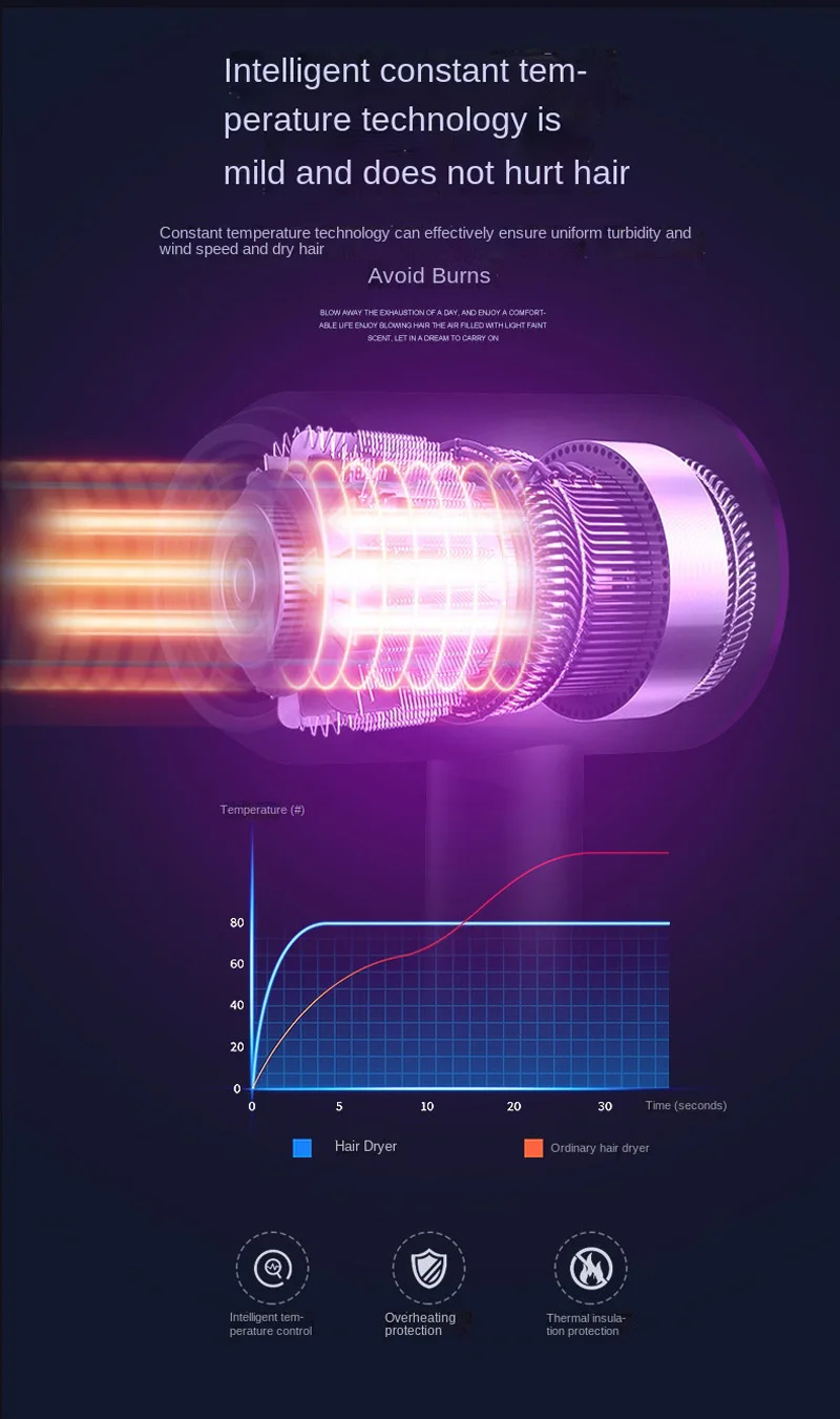 .The modulated brushless motor with low noise can bring a pleasant blowing experience.