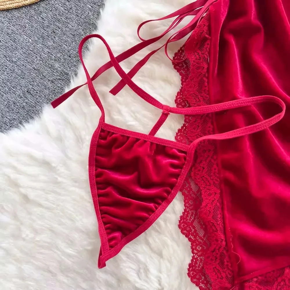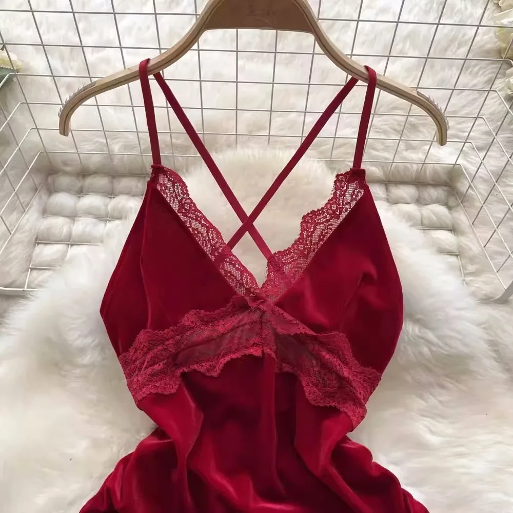 Hot Sexy V-Neck Cross Strap Dress Lace Patchwork Irregular Pleated Nightwear Women’s Erotic Lingerie