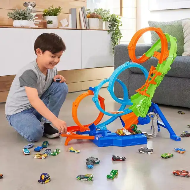 HOT WHEELS Track Toy Racing Track Children's Men's Wind and Fire Wheel Electric Four Ring Impact Track Remote Control Car Track