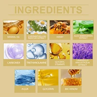 Bee venom, golden chamomile extract, honey, Aloe vera extract
