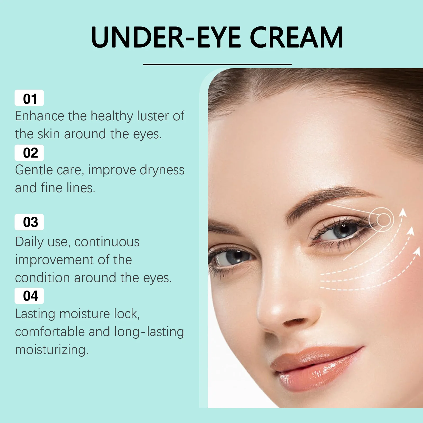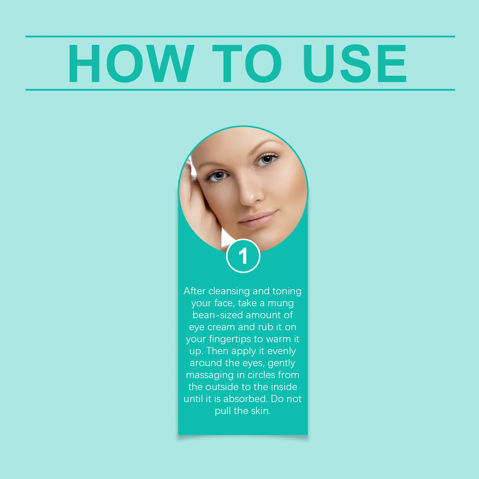 After cleansing, take a rice-sized amount and warm between fingertips. Gently pat and massage around the eye area from the outer to inner corner until fully absorbed. Use AM & PM.