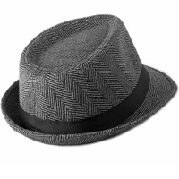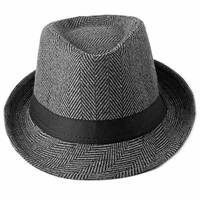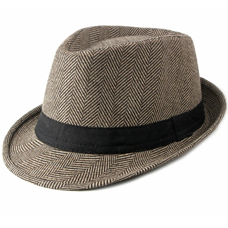 HT2751 Men Jazz Hat Retro Striped Fedoras Autumn Winter Hat for Men Male Gentleman Derby Trilby Hat Casual