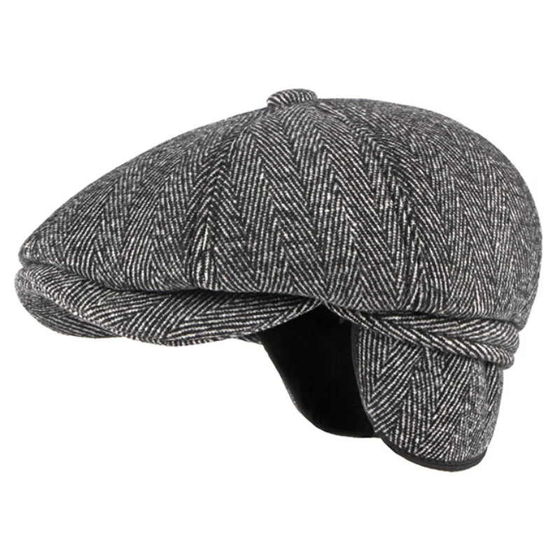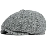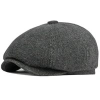 HT3336 Mens Berets Autumn Winter Cap Hat Thick Warm Men Beret Cap Male Vintage Wool Beret Hat Dad Grandfather Octagonal Flat Cap