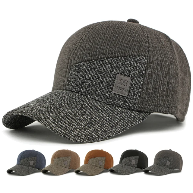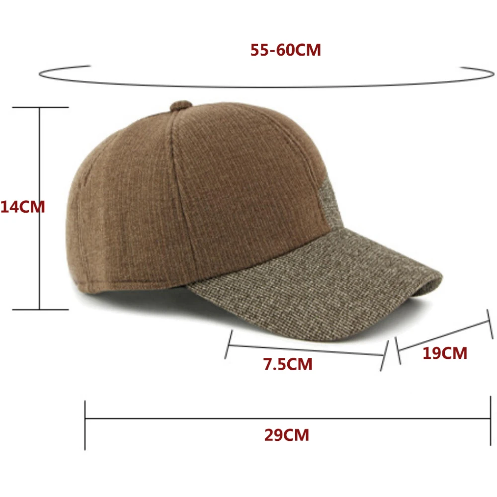 HT5011 Winter Baseball Cap Thick Warm Fleece Lined Cap for Men Women Wool Baseball Hats with Ear Flaps Adjustable Father Dad Hat