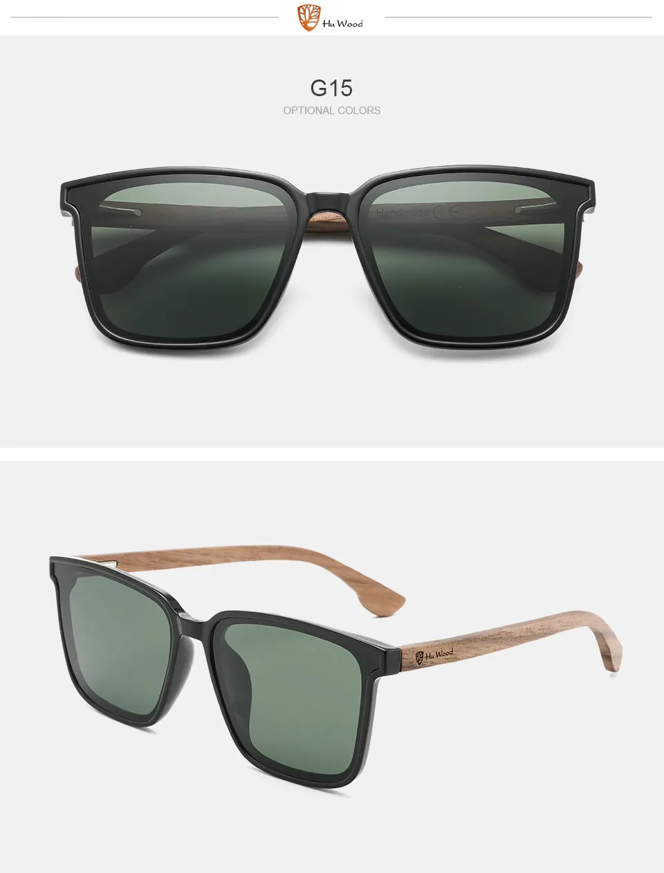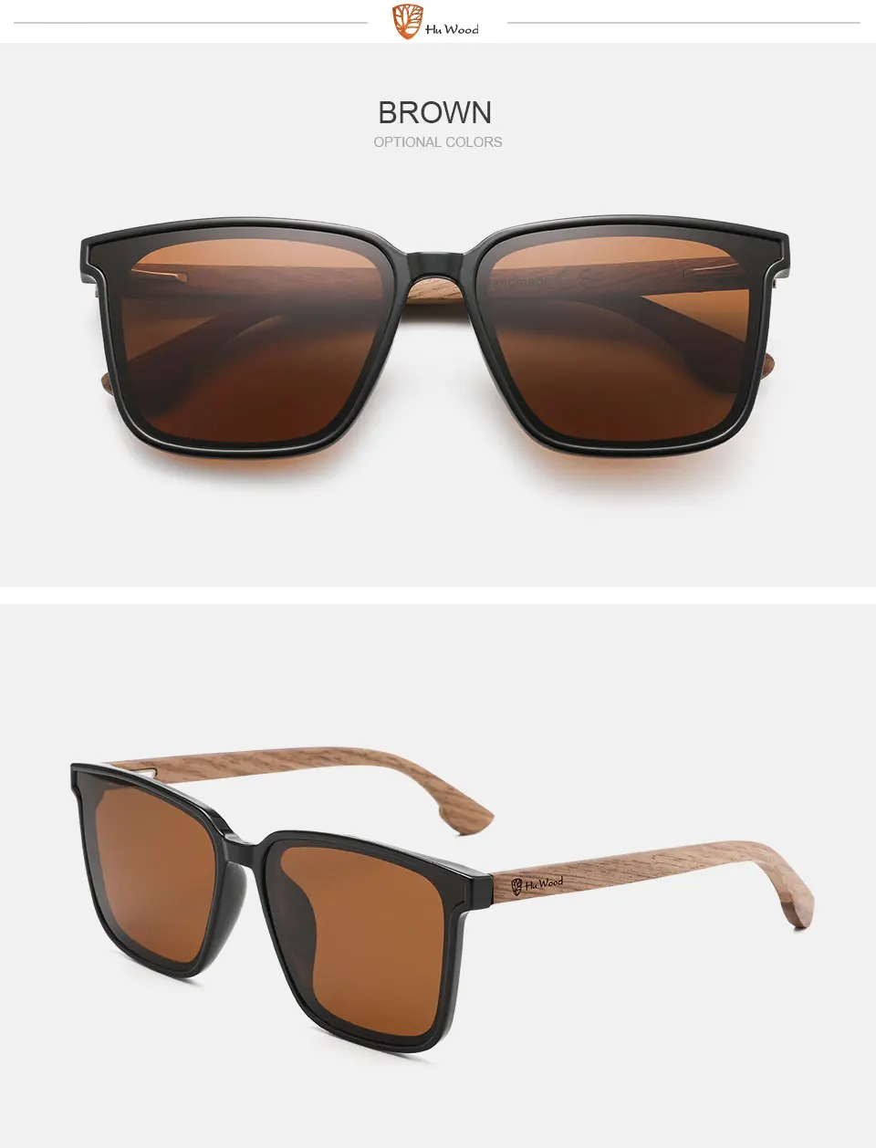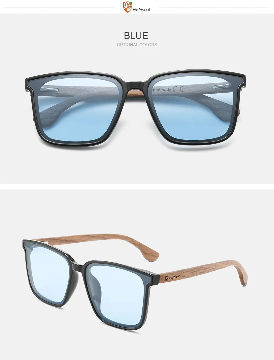 Hu Wood Square Men Women Sunglasses Polarized Sun Glasses Blue Lenses Wooden Legs Shades Uv400 GR8052